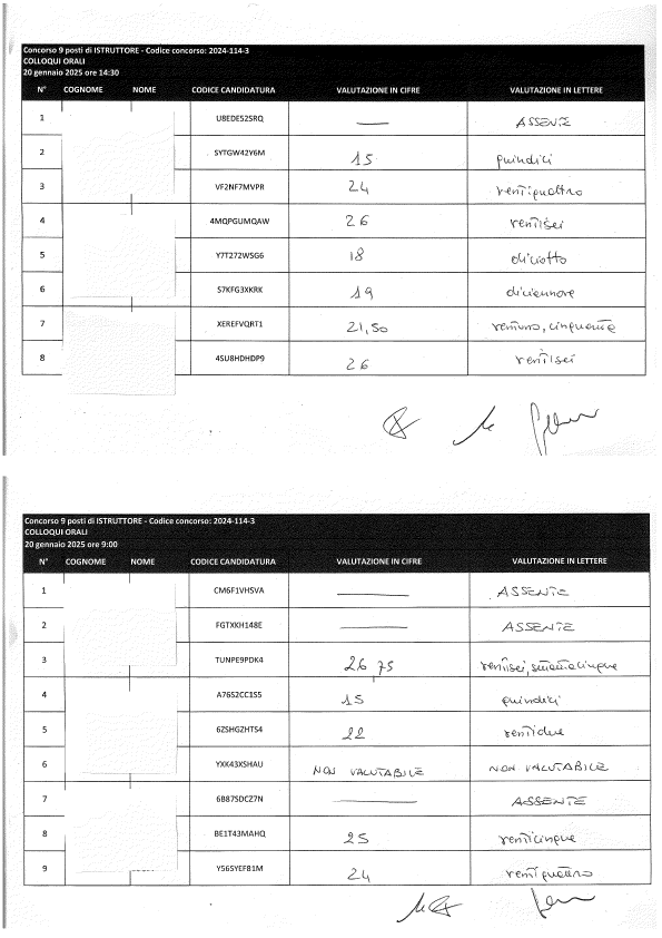 Come da provvedimento di ammissione DD 2359 del 25/09/2024, l’elenco completo con nomi e cognomi dei candidati ammessi è depositato agli atti d’ufficio, ai sensi del GDPR 2016/679 ( per ragioni di privacy), pertanto il personale dell’ufficio concorsi NON è autorizzato a fornire informazioni telefoniche o via e-mail.