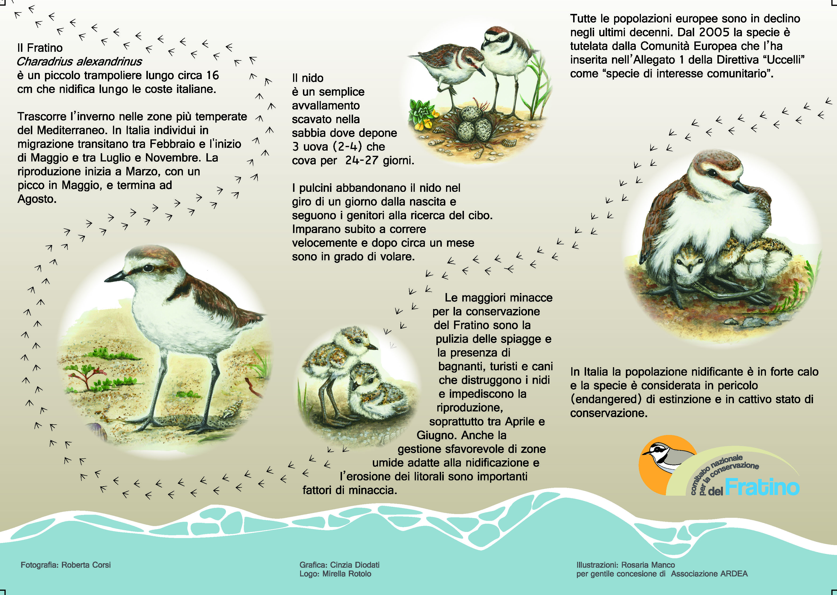 - Divieto di asportazione delle uova e di danneggiamento dei nidi di fratino (dalla Direttiva comunitaria 2009/147 (ex 79/409) sulla “Conservazione degli uccelli selvatici”, dove è riportata dal 2005 nell’allegato I come “specie di interesse comunitario”, e dalla Legge n.157/1992 “Norme per la protezione della fauna selvatica omeoterma e per il prelievo venatorio”);