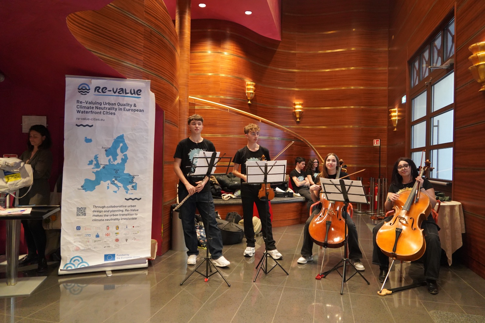 Ad accogliere i partecipanti all'evento è stato il quartetto musicale di studenti che ha composto la coinvolgente colonna sonora del video, poi proiettato in sala alla presenza dei relatori. Erano presenti, oltre a tantissimi studenti del Liceo Scientifico e Musicale Einstein, il sindaco Jamil Sadegholvaad, Anna Montini (assessora ambiente del Comune di Rimini), Gabriele Barisano (assessore ambiente del Comune di Vasto), Vincenzo Olivieri (presidente Centro Studi Cetacei di Pescara), Franco Sacchetti (direzione artistica Festival dei Sette Capodogli). A coordinare l'evento Manuela Fabbri, presidente dell'associazione Basta Plastica in Mare Network.