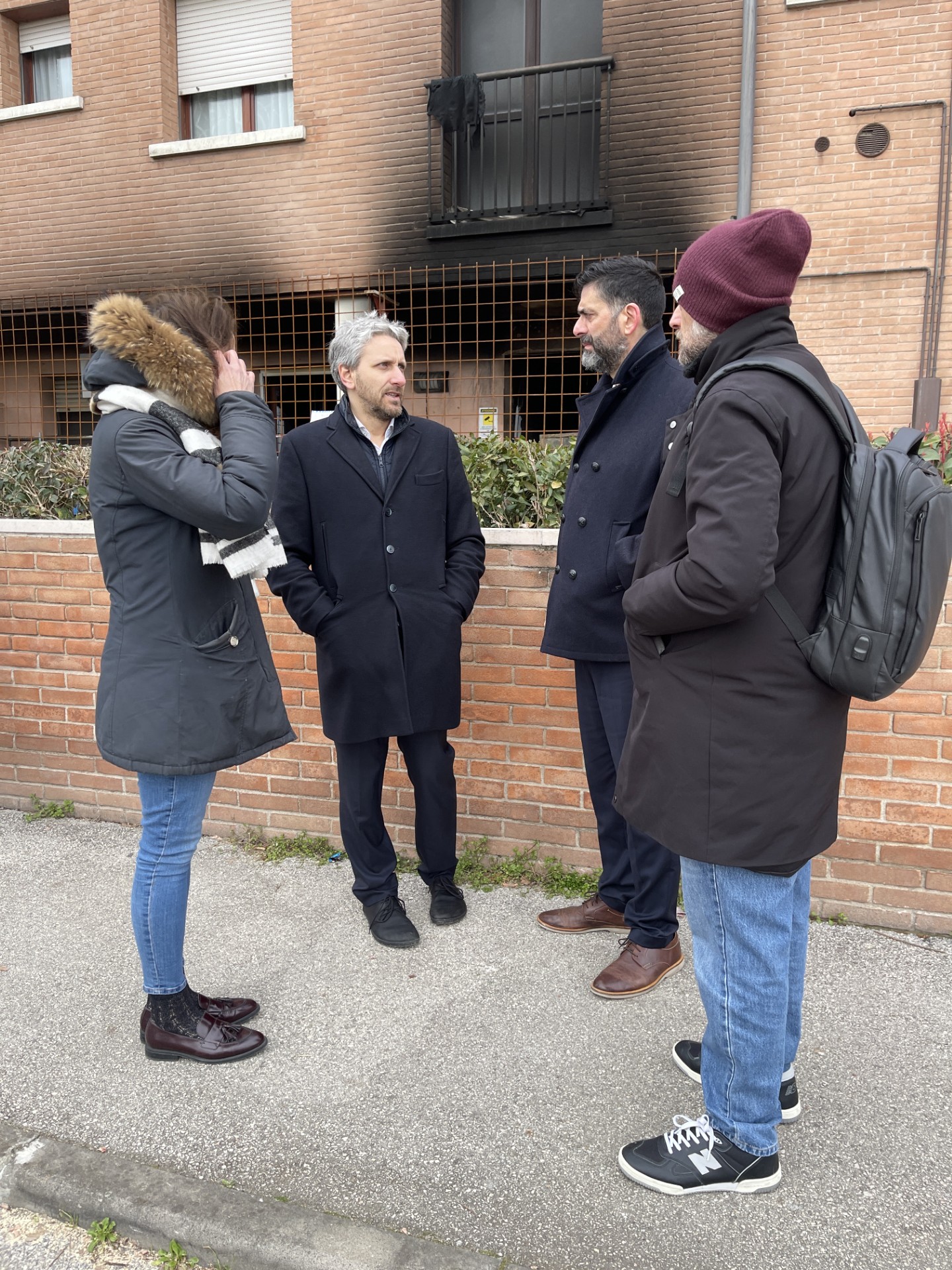 A seguito del grave incendio che ha colpito la scorsa settimana una palazzina di residenza popolare in via Giuliano da Rimini, questa mattina, l’amministrazione comunale, con la presenza dell’Assessore Kristian Gianfreda, ha effettuato un ulteriore sopralluogo sul luogo insieme al personale di Acer Rimini e all’Assessore regionale alle Politiche abitative Giovanni Paglia, che ha voluto esprimere la vicinanza della Regione Emilia-Romagna alle persone coinvolte.