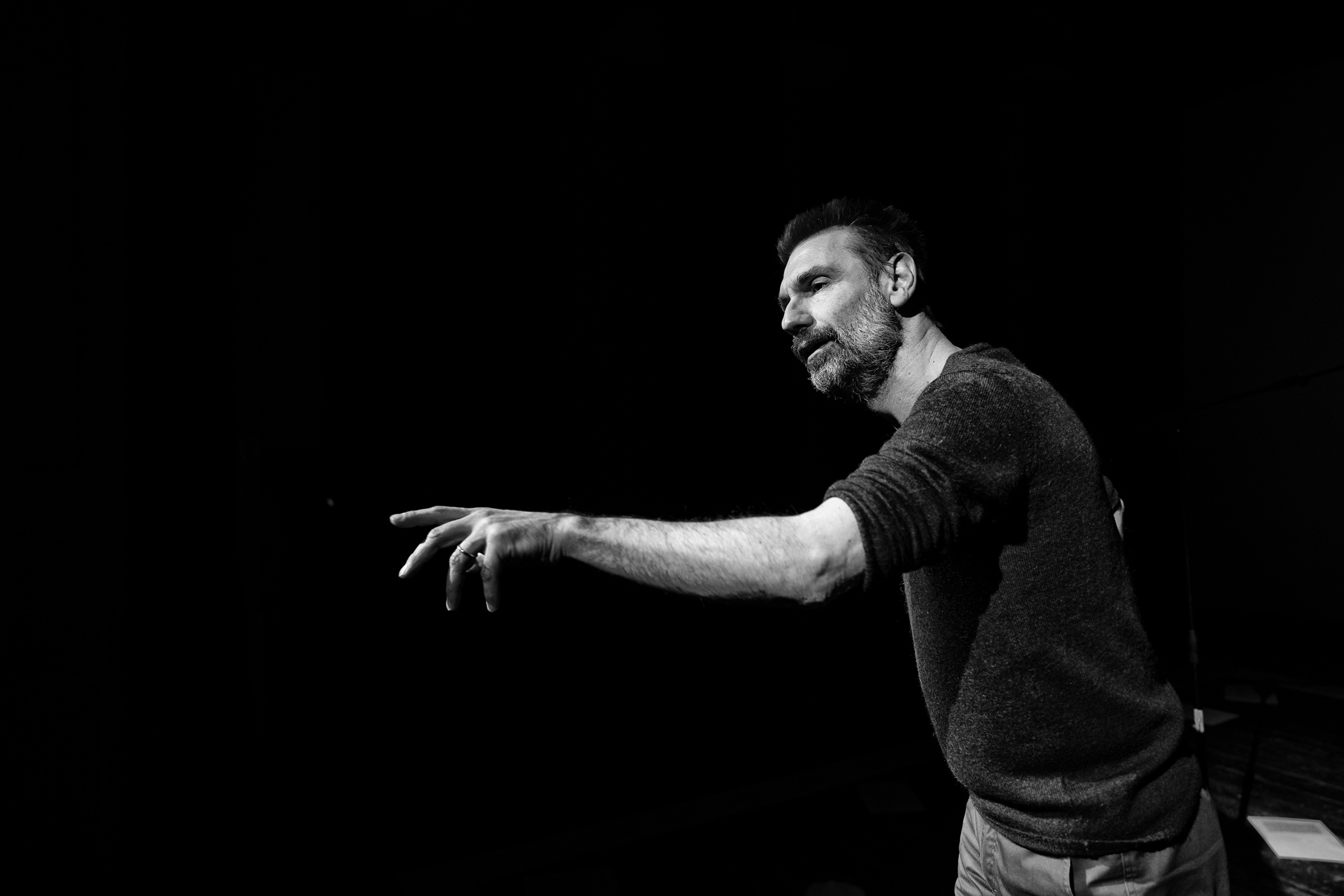 A dare corpo e voce al carteggio della prigionia, riempiendo da solo il palcoscenico con una scenografia minimale a fare da sfondo, è Fabrizio Gifuni che si immerge nel personaggio e quindi nella Storia del Paese, abitando il testo e il linguaggio. Dopo aver lavorato sui testi pubblici e privati di Carlo Emilio Gadda e Pier Paolo Pasolini in due spettacoli struggenti e feroci, riannodando una lacerante antibiografia della nazione , Gifuni - tra i più stimati e apprezzati artisti della sua generazione - attraverso questo doloroso e ostinato lavoro di drammaturgia si confronta con lo scritto più scabro e nudo della storia d'Italia.