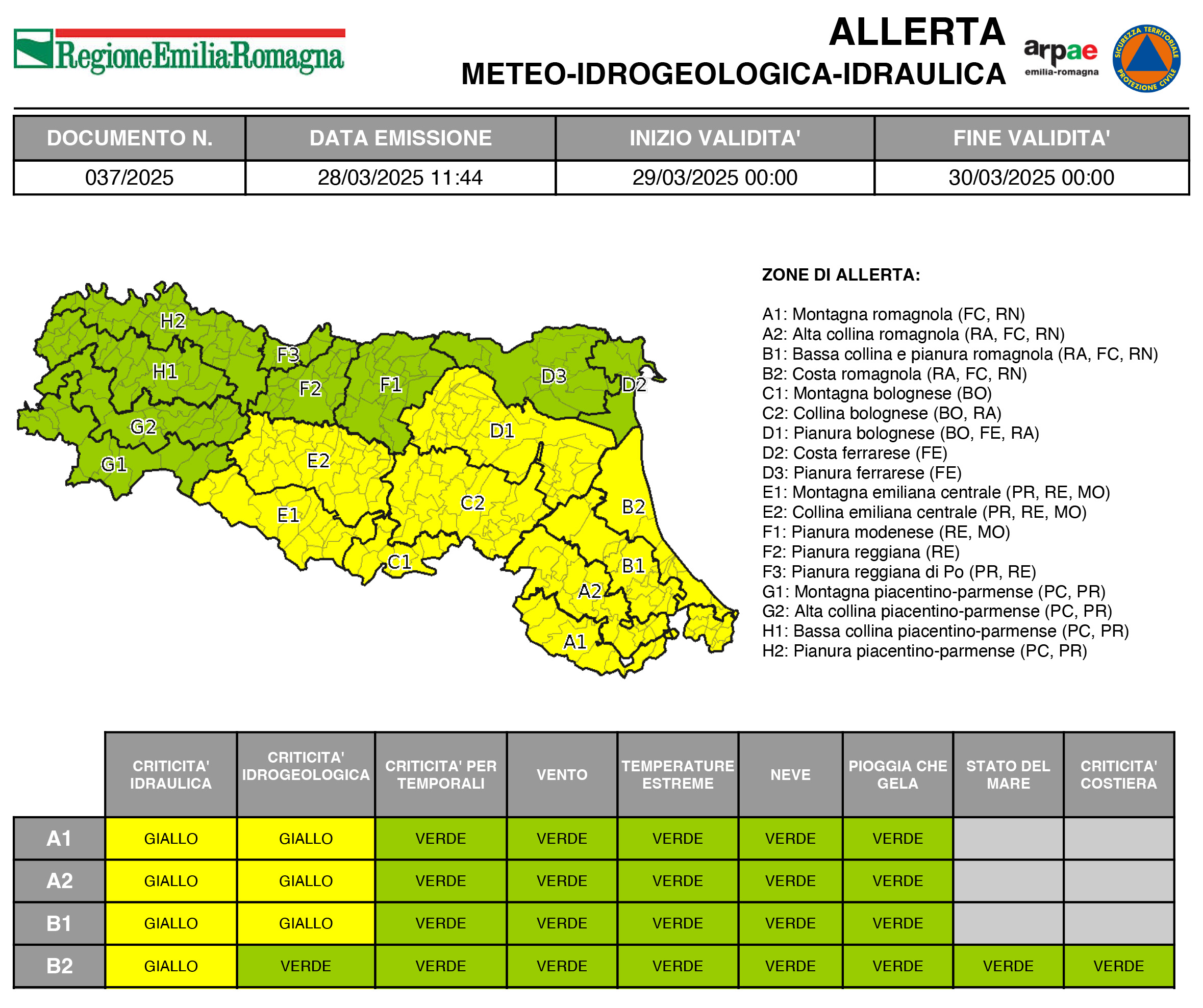 La Protezione civile regionale dell’Emilia Romagna ha emesso allerta meteo “gialla” criticità idraulica per sabato 29 marzo che riguarda l’area di riferimento “B2” che ricomprende il Comune di Rimini.