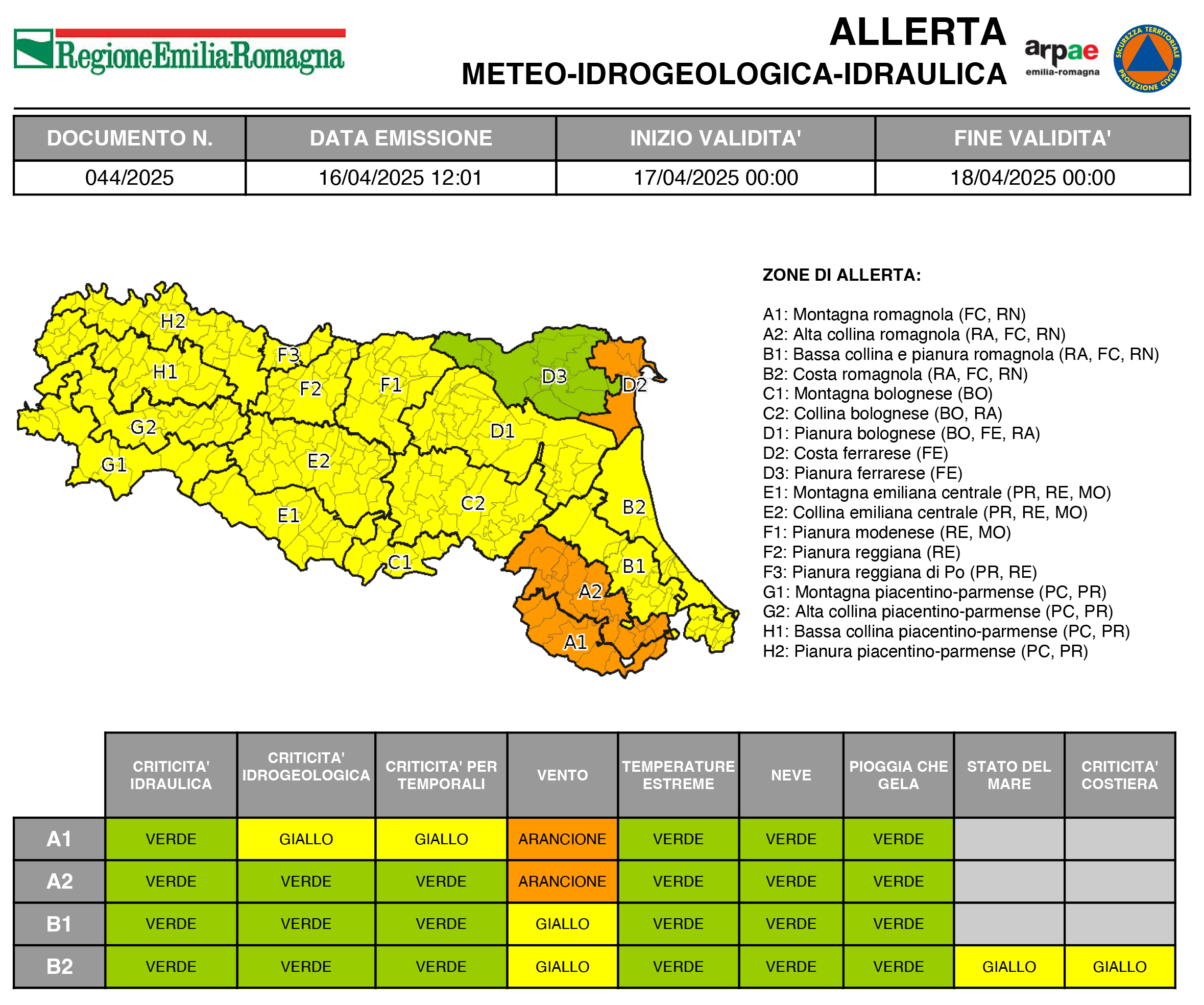 La Protezione civile regionale dell’Emilia Romagna ha emesso allerta meteo “gialla” per vento, stato del mare e criticità costiera per giovedì 17 aprile che riguarda l’area di riferimento “B2” che ricomprende il Comune di Rimini.