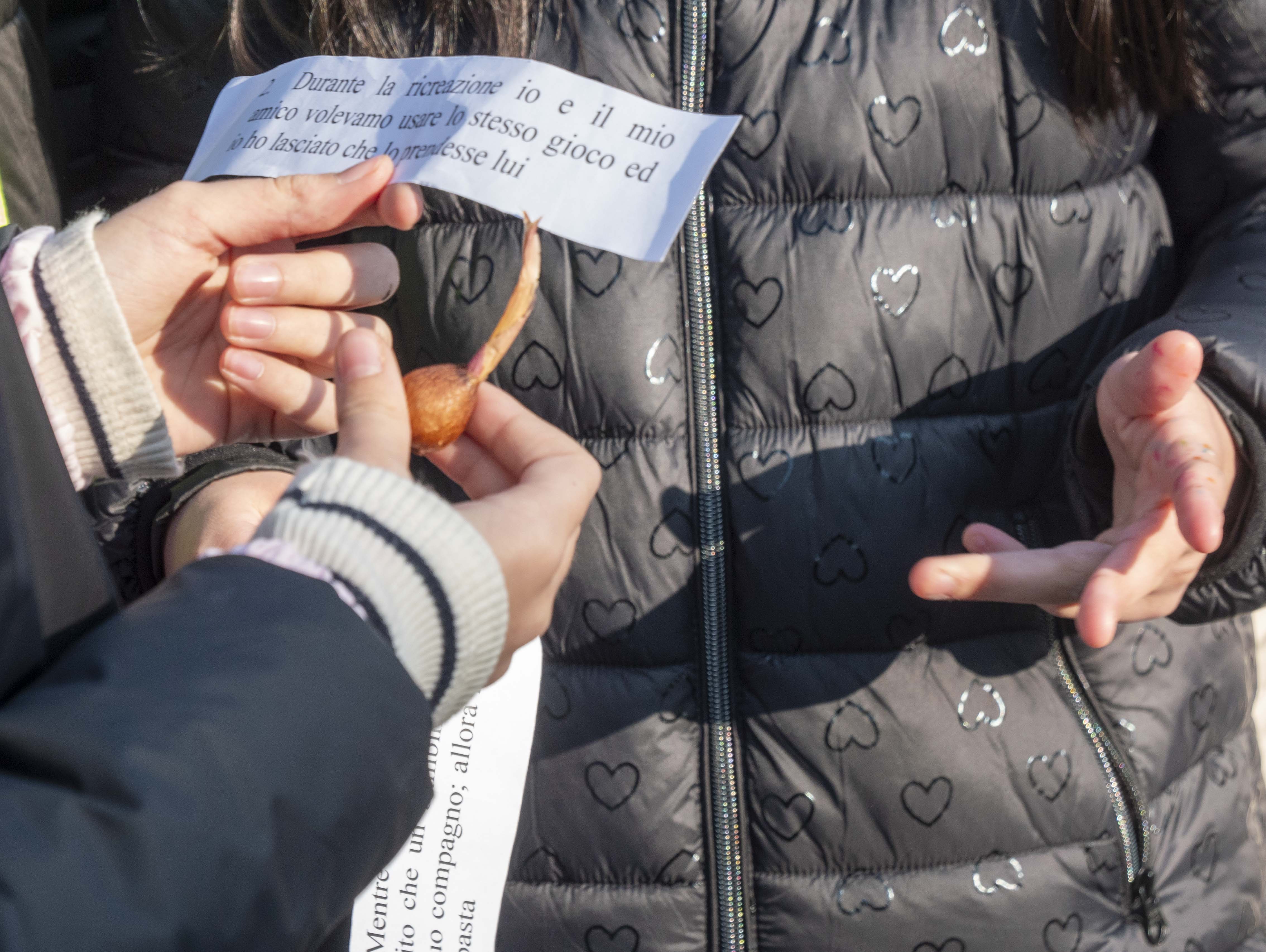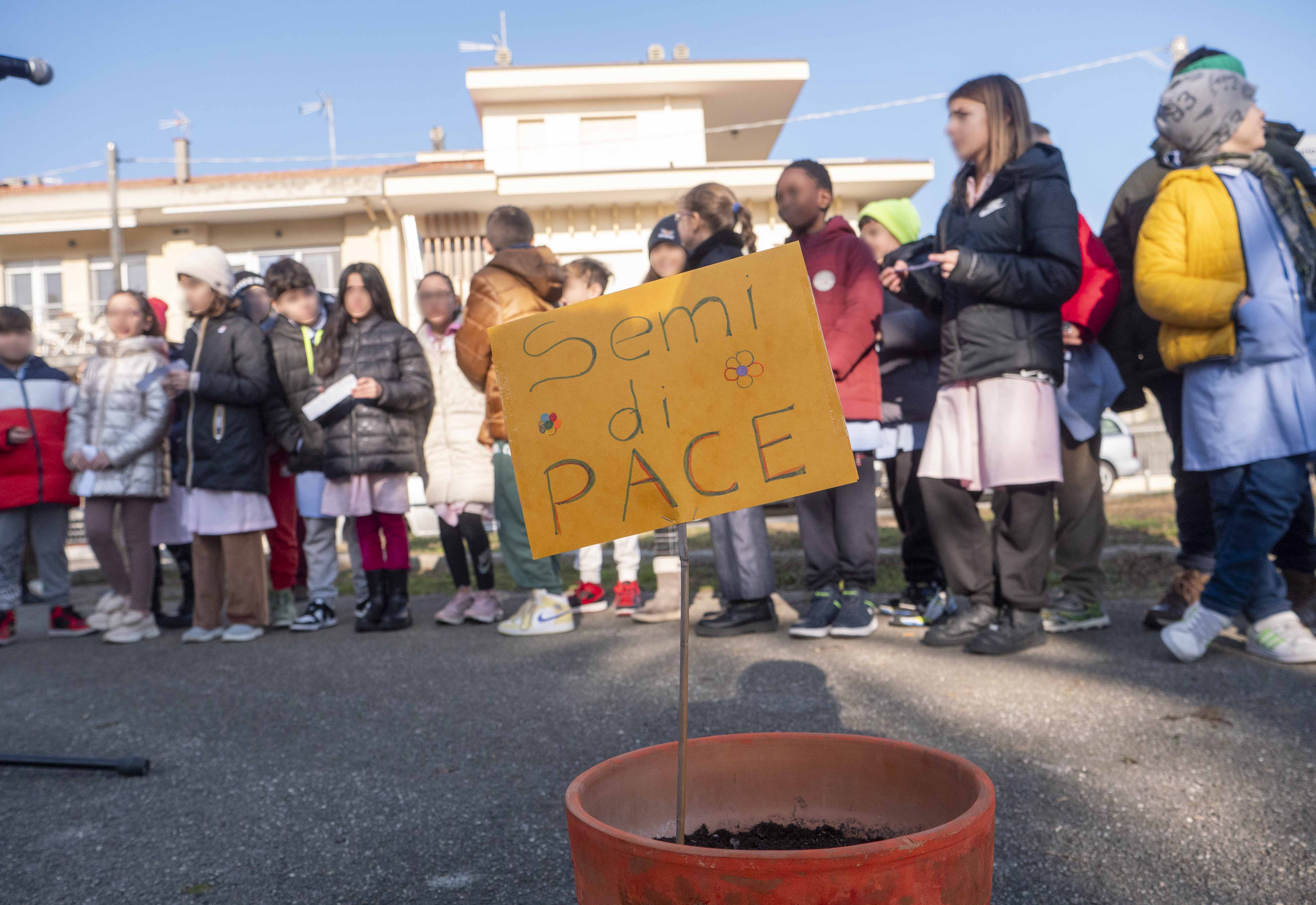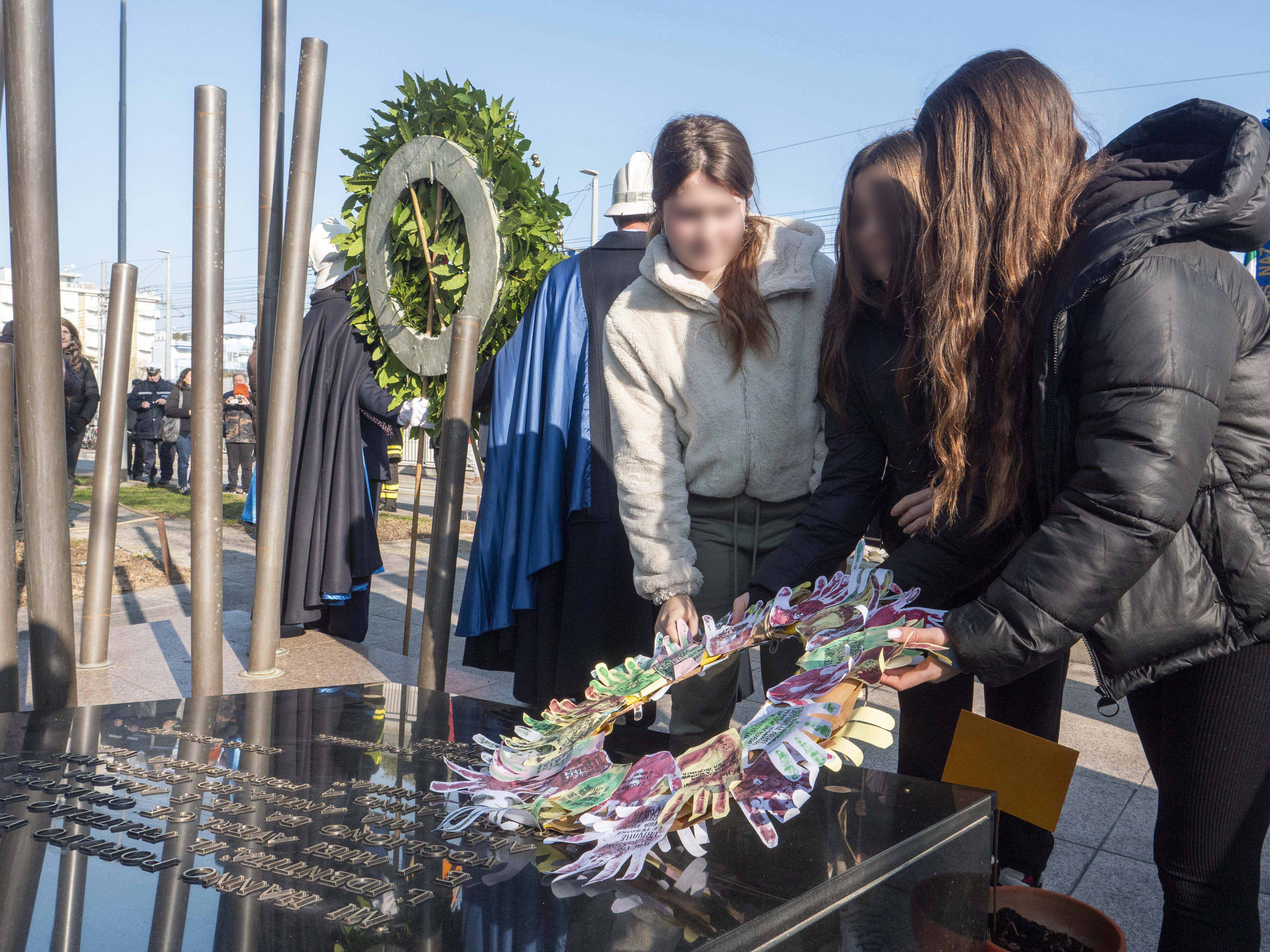 Sono stati proprio gli studenti, che questa settimana hanno riflettuto su alcuni temi legati alla Shoah, a leggere alcune loro riflessioni. Per ogni pensiero, un seme che è stato piantato in un vaso da loro preparato. Un gesto semplice ma simbolico, accompagnato dalla deposizione di una corona di pensieri scritti sulla carta, che i ragazzi hanno deposto ai piedi del monumento, per rievocare l’importanza della memoria e la necessità indispensabile di custodirla e farla crescere con cura.