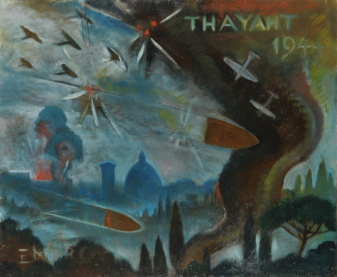 Proprio grazie all’eredità famigliare, si sono potute raccogliere numerose opere datate tra il 1917 e il 1958, in particolare disegni, studi e bozzetti per la creazione di sculture, mobili, oggetti d’arredo, monumenti, abiti, decorazioni tessili e anche la planimetria della “Casa gialla”, la sua residenza-studio a Pietrasanta, dove si dedica all’avveniristica e utopistica costruzione di un “carrovela”, un veicolo azionato dal vento e testato sulla vicina spiaggia. Il corpus di opere, conservate dai familiari e rese note solo recentemente è in gran parte legato all’aspetto progettuale della sua attività e documenta il felice rovello di una mente concentrata sulla speculazione del nuovo, sulla sintesi formale di un’idea che cambi i connotati del quotidiano e ridisegni il mondo in ogni aspetto della nostra esistenza. Nella sua carriera Thayaht ha partecipato a diverse edizioni della Biennale di Venezia e si è legato a personalità di spicco della cultura internazionale come l’ideatore dei Balletti Russi, Sergej Djagilev, lo storico Bernard Berenson, l’orientalista Fosco Maraini, e il poeta Ezra Pound oltre alla già citata cerchia dei Futuristi, con cui condivide il culto di una modernità illuminata, ma a cui accosta l’esplorazione di altri misterici e insondabili mondi.