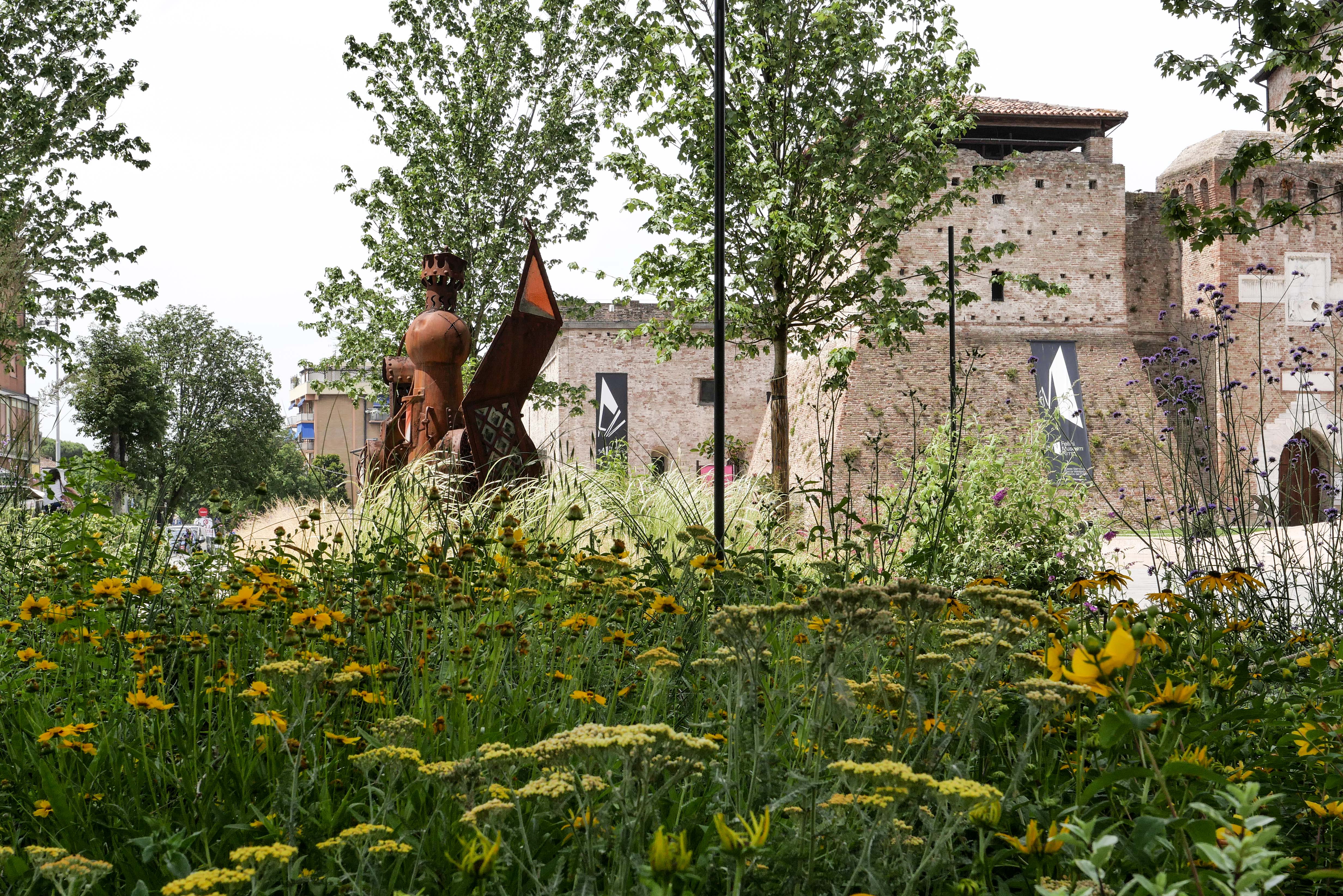 L’Amministrazione comunale si è distinta per l’intervento di riqualificazione del Bosco dei nomi, un lavoro straordinario di valorizzazione dello spazio rievocativo della “campagna felliniana” in piazza Malatesta, che ha visto restituire una porzione di città storica, prima pavimentata e dedicata alla viabilità, alla "prima campagna" riminese tramite l'introduzione, nell’area posta a sud del teatro Galli, di un "triangolo verde” caratterizzato dalla messa a dimora di un tappeto verde in cui sono inserite specie erbacee e arbustive (vegetazione bassa) e nuove alberature di acero che valorizzano la presenza del Platano centenario di particolare interesse storico, culturale e paesaggistico, che rimane il fulcro della geometria di quella porzione di piazza. La scelta botanica delle specie che caratterizzano il "triangolo verde" risponde alla volontà di restituire alla piazza atmosfere diverse durante le fasi dell’anno e si ispira ai progetti sospesi di Tonino Guerra, a completamento del polo museale diffuso Fellini Museum, con i fiori di pietra illuminati da tre lanterne in ferro battuto e vetro dedicate allo scrittore russo Lev Tolstoj.