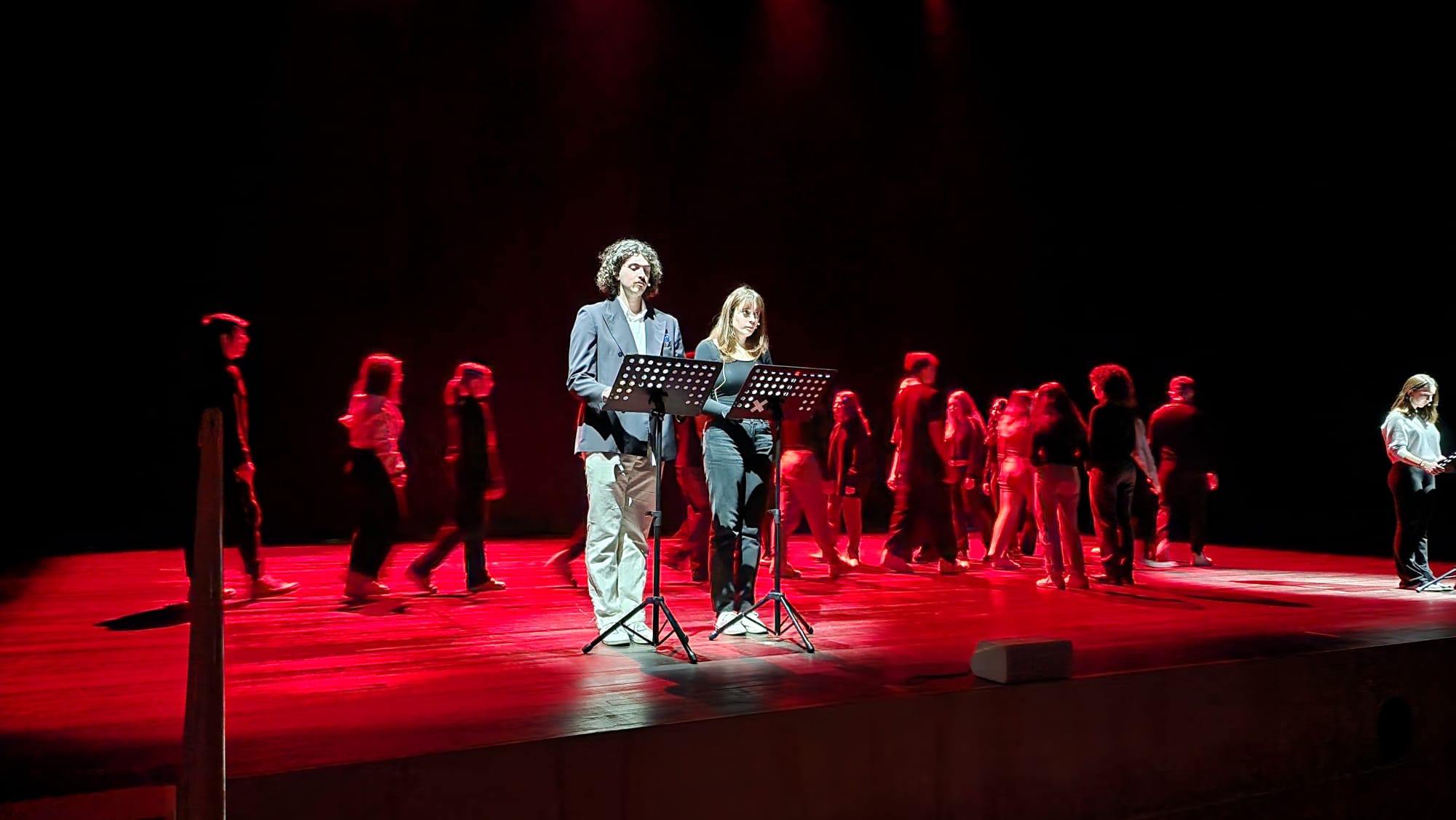 Con loro, successivamente al viaggio, è stato fatto un laboratorio di scrittura espressiva sul viaggio ad Auschwitz. Un percorso che i ragazzi hanno fatto insieme, coordinato dall'Associazione Culturale e Teatrale Alcantara, per raccontare l'esperienza vissuta e riuscire a rapportare la propria emotività. Con i loro racconti e i loro movimenti espressivi i ragazzi sono riusciti a creare una struttura drammaturgia narrativa molto suggestiva, che ha rapito l'attenzione del pubblico del Teatro Galli, dando un'idea concreta di ciò che hanno studiato e visto con i propri occhi.