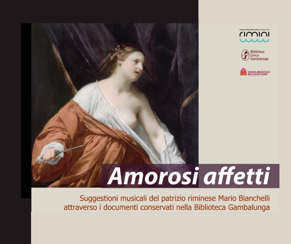 Domenica 2 luglio a partire dalle 21.30 il gruppo ArsEmble sarà protagonista di una serata dal titolo “Amorosi affetti”, una ricognizione delle cantate da camera composte da Mario Bianchelli - autore originario di una nobile e facoltosa famiglia riminese di cui la Biblioteca Gambalunga conserva una preziosa partitura manoscritta del XVII secolo.
