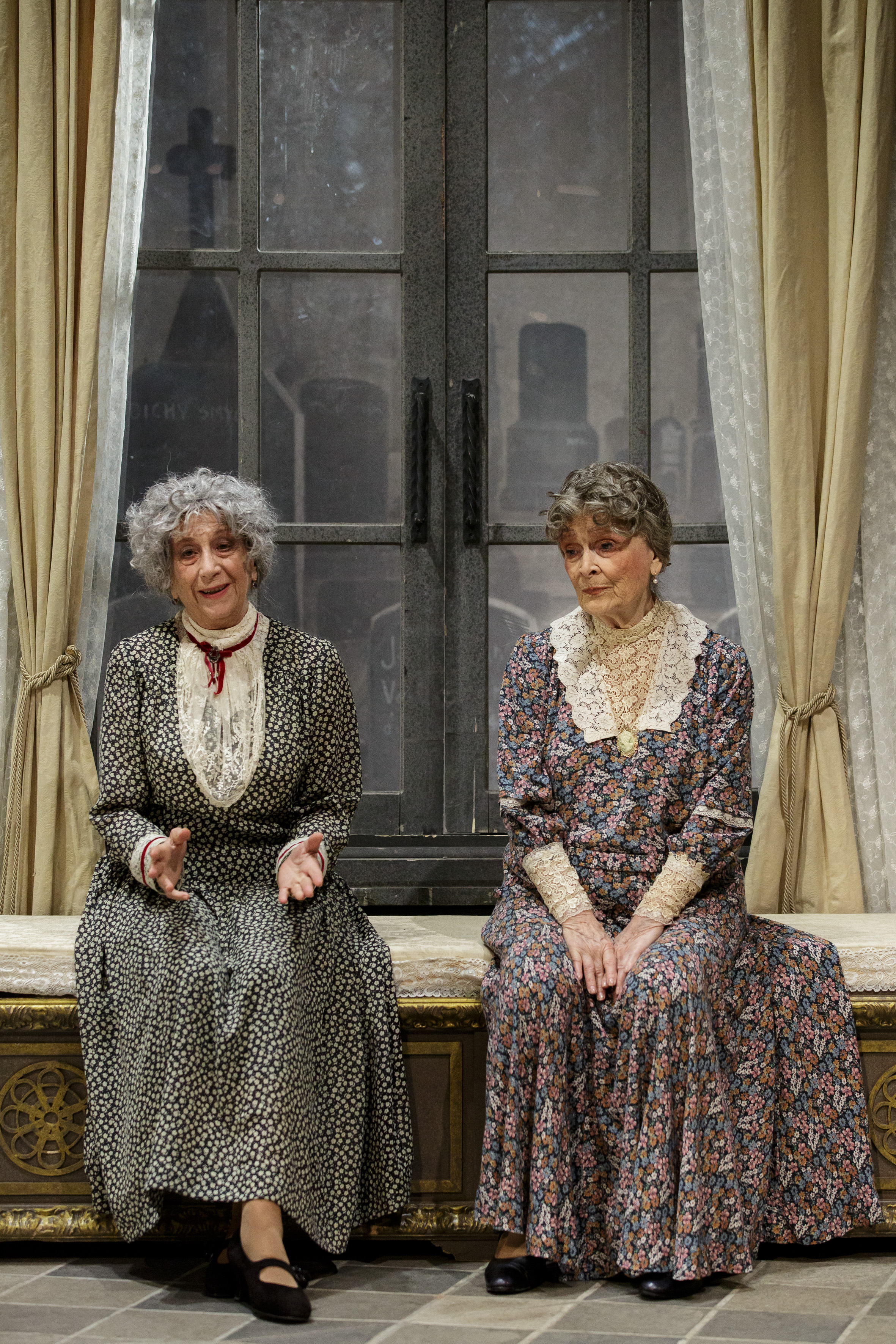 Un carnevale di personaggi grotteschi che ruotano attorno alle due apparentemente care vecchiette, magistralmente interpretate sul palcoscenico riminese da due grandi nomi del teatro italiano, come Annamaria Guarnieri, primadonna prediletta da registi come Franco Zeffirelli e Luca Ronconi, qui prestata al gioco comico con una sapienza scenica ineguagliabile e Marilù Prati, abilissima a calarsi nei panni di Abby.