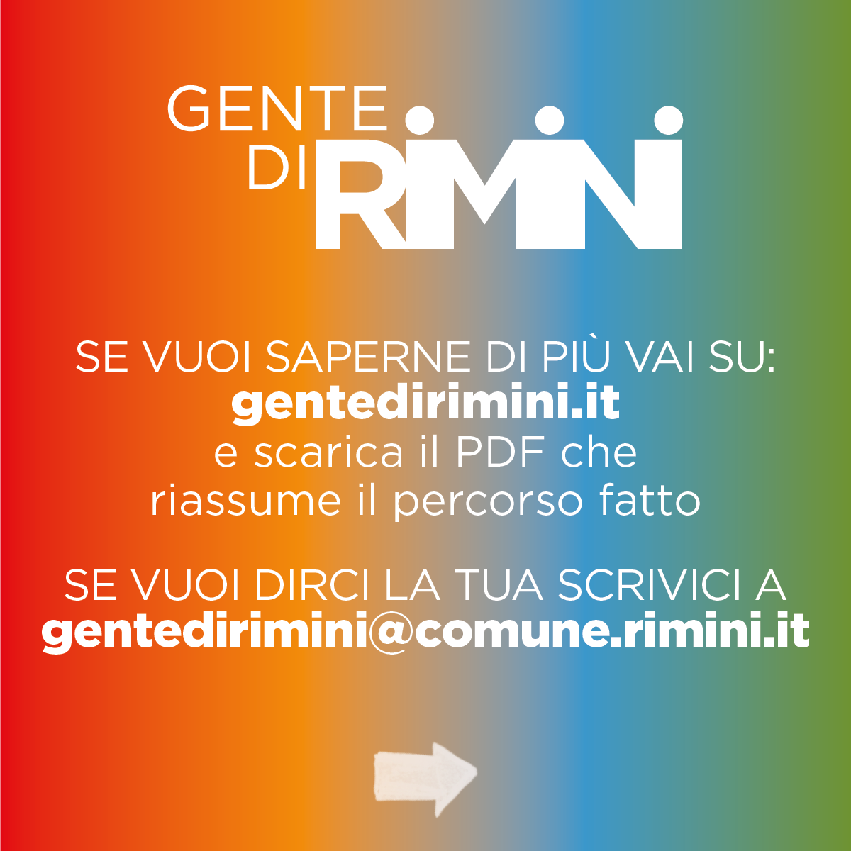 L'invito è aperto a tutti coloro che desiderano dare il proprio contributo per migliorare la qualità della vita nella comunità riminese. Chi non potrà partecipare all’incontro, ma vuole comunque esprimere le proprie idee, può farlo inviando una e-mail a gentedirimini@comune.rimini.it o compilando il questionario online disponibile al link https://bit.ly/GenteDiRimini.