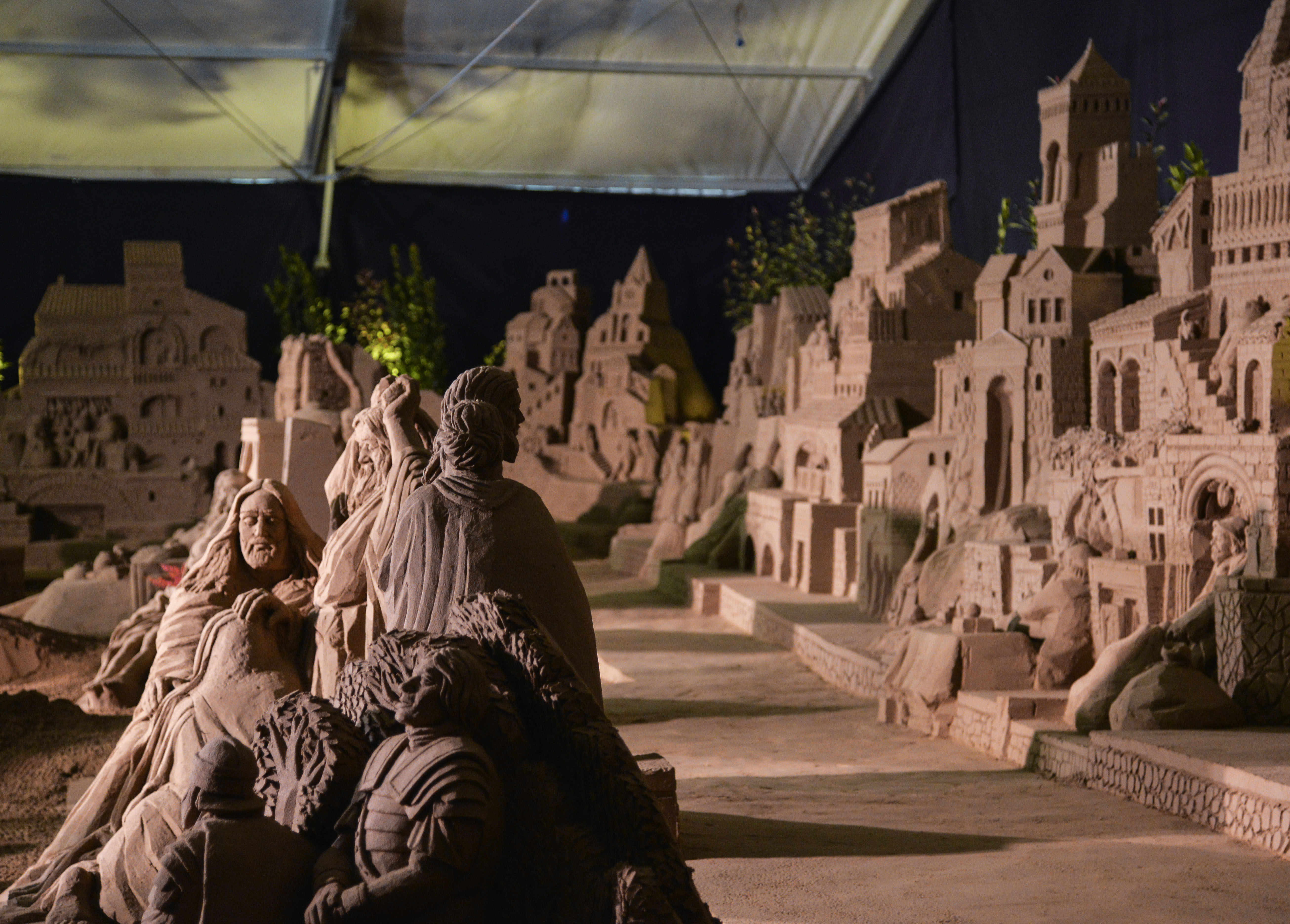 Gruppi scultorei a grandezza naturale danno vita alla Natività di sabbia e a spettacolari scenografie natalizie, create da un team internazionale di artisti della sabbia, che quest’anno si cimenteranno sul tema: "La Rinascita", mondo vecchio e mondo nuovo, lo spirito della vita.
