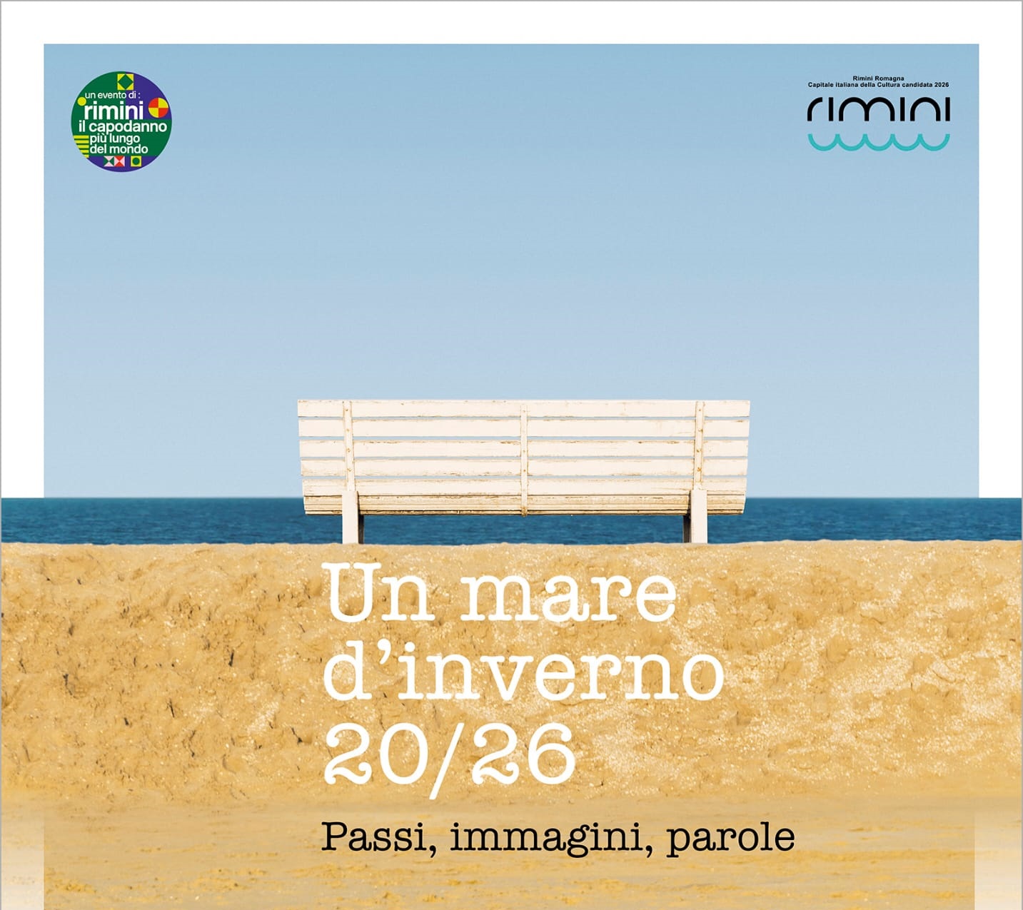 Anche la spiaggia si illumina a festa regalando a turisti e riminesi una passeggiata in riva al mare in pieno clima natalizio. La duna che va dal bagno 1 al bagno 63 diventa una lunga passeggiata poetica, reinventando il paesaggio invernale attraverso un percorso sopraelevato, realizzato a protezione della spiaggia, e allestito con panchine illuminate con luci natalizie anche di notte e punteggiato da immagini fotografiche che raccontano il tema del mare d’inverno a cura di Piacere Spiaggia Rimini. La passeggiata di un paio di chilometri di fronte al mare diventa una vera e propria mostra collettiva open air offrendo non solo scatti dei più importanti fotografi del territorio riminese, ma raccontando anche, dal retro di ogni immagine, il mare d’inverno attraverso le parole di noti autori della cultura riminese.