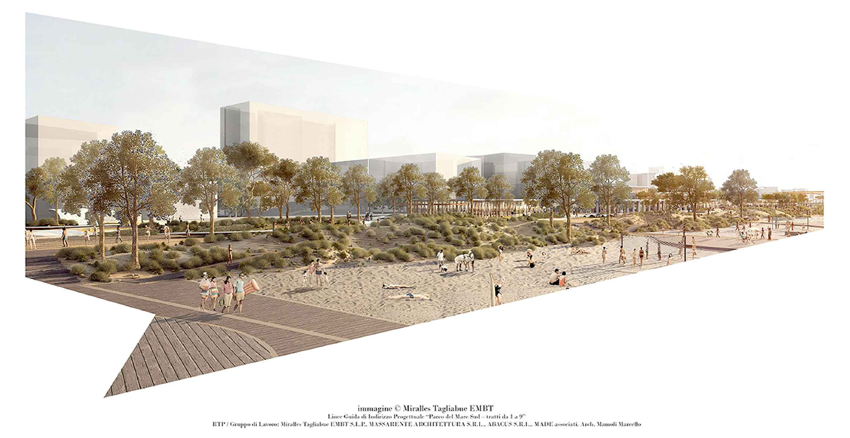 Anche per i tratti “2” e “3” del progetto “Parco del Mare”,  si prevedono opere di rigenerazione urbana, riqualificazione ambientale e paesaggistica, che mirano alla creazione di un nuovo paesaggio naturale tra la città e il mare. Un obiettivo che ha come focus quello di restituire i luoghi interessati a una fruizione pubblica di elevata qualità, sotto il profilo del comfort urbano. Un progetto che include anche la mitigazione degli effetti dell’ingressione marina e la riorganizzazione complessiva del lungomare e dell’arenile adiacente.