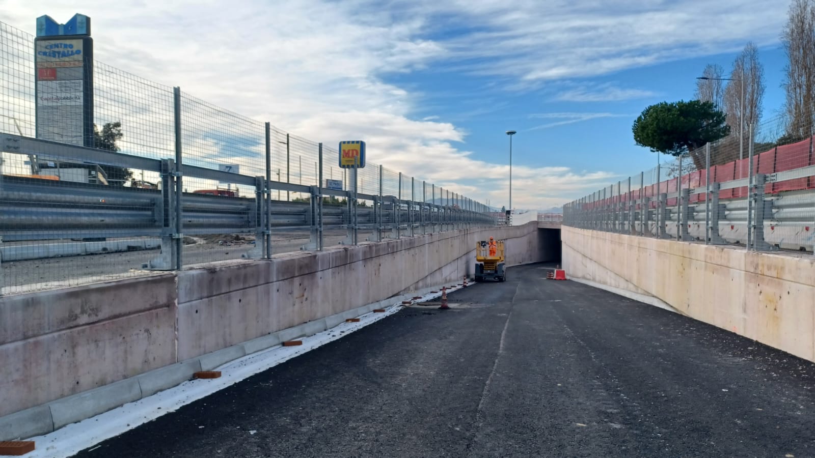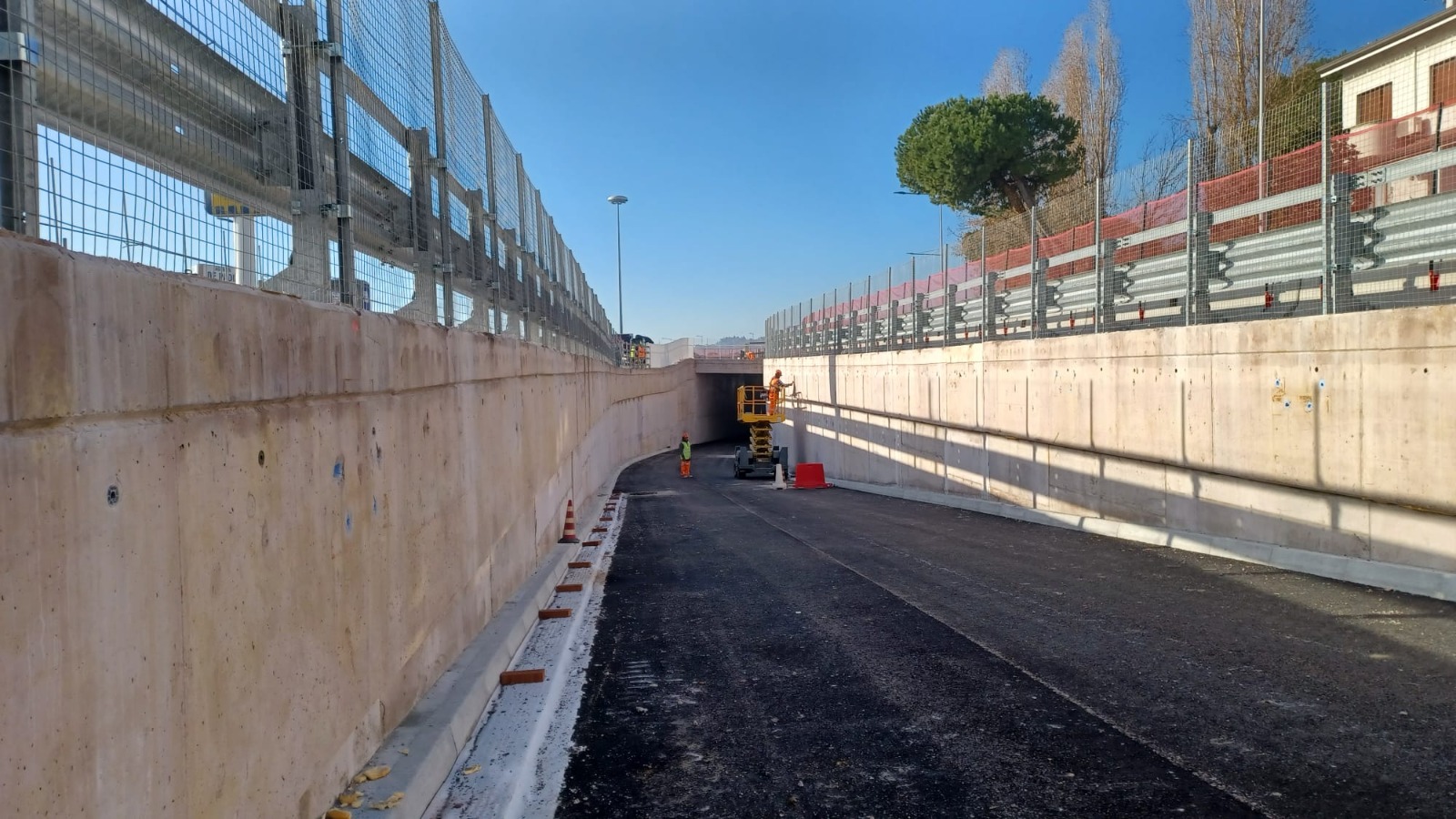 Tutte le opere strutturali sono sostanzialmente concluse, restano da ultimare le asfaltature, l'illuminazione del sottopasso ed i collaudi impiantistici. L’apertura della viabilità direzione mare, richiederà qualche giorno di sacrificio per la direzione monte, la quale dovrà essere chiusa per il tempo strettamente necessario a portare in definitivo segnaletica ed asfalti, che erano stati realizzati provvisoriamente per ridare ossigeno alla viabilità locale e riaprire il collegamento.