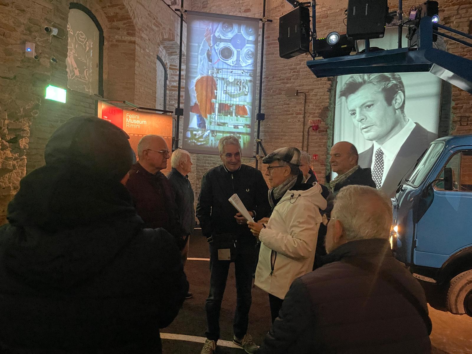 L'altro ieri, Mauro ha accompagnato il gruppo di ospiti del primo centro anziani in una visita nelle sale della Rocca Malatestiana alla scoperta dei costumi, delle opere cinematografiche, degli schizzi e delle atmosfere oniriche del cineasta, intrecciando la sua 'lezione’ con curiosi aneddoti. “Sapete che Mastroianni indossava una muta sotto il vestito nell’iconica scena della Fontana di Trevi in ‘La Dolce Vita’ per resistere al freddo dell’acqua?” ha detto con un sorriso alle visitatrici e ai visitatori.