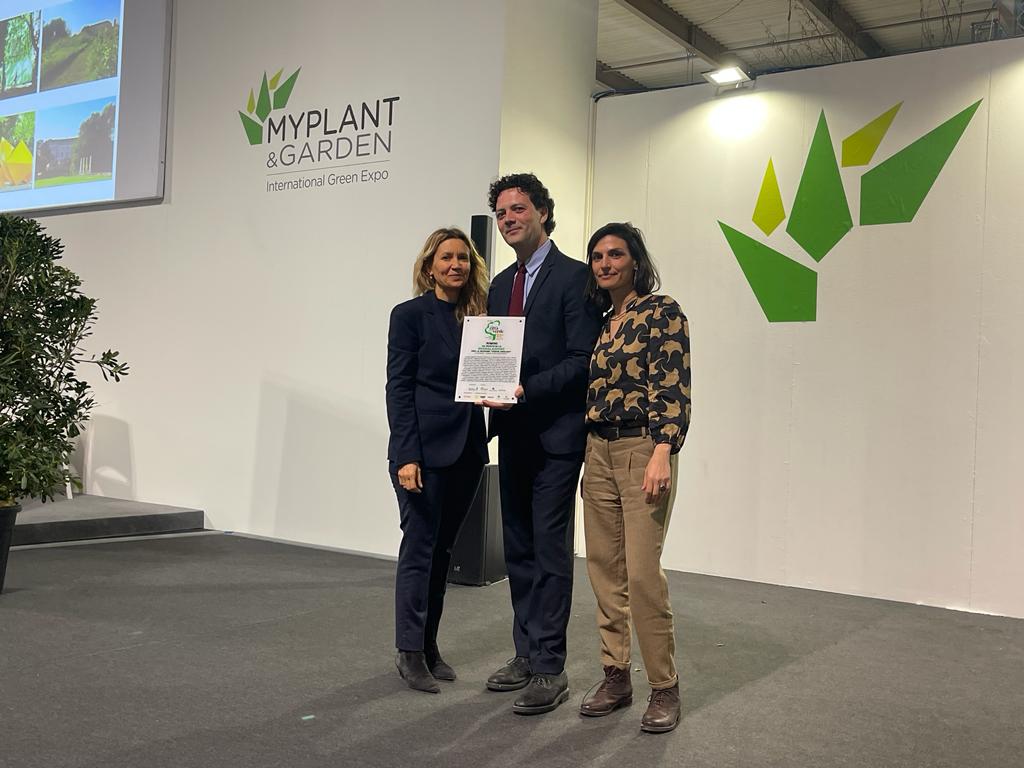 Sono stati l’Assessore ai Lavori Pubblici Mattia Morolli, Chiara Fravisini, Dirigente Settore Facility Management e Carlotta Fabbri, progettista del verde, a ritirare questa mattina il premio 'Città per il Verde 2022/2023 - Investire nel verde per crescere’. Una consegna ufficiale che si è svolta nell’ambito dell’importante fiera professionale dell’orto-florovivaismo, del garden e del paesaggio “Myplant & Garden”, alla Fiera di Milano - Rho, il più importante salone internazionale del verde, del garden, della floricoltura, del vivaismo e del paesaggio che si svolge in Italia dal 2000.