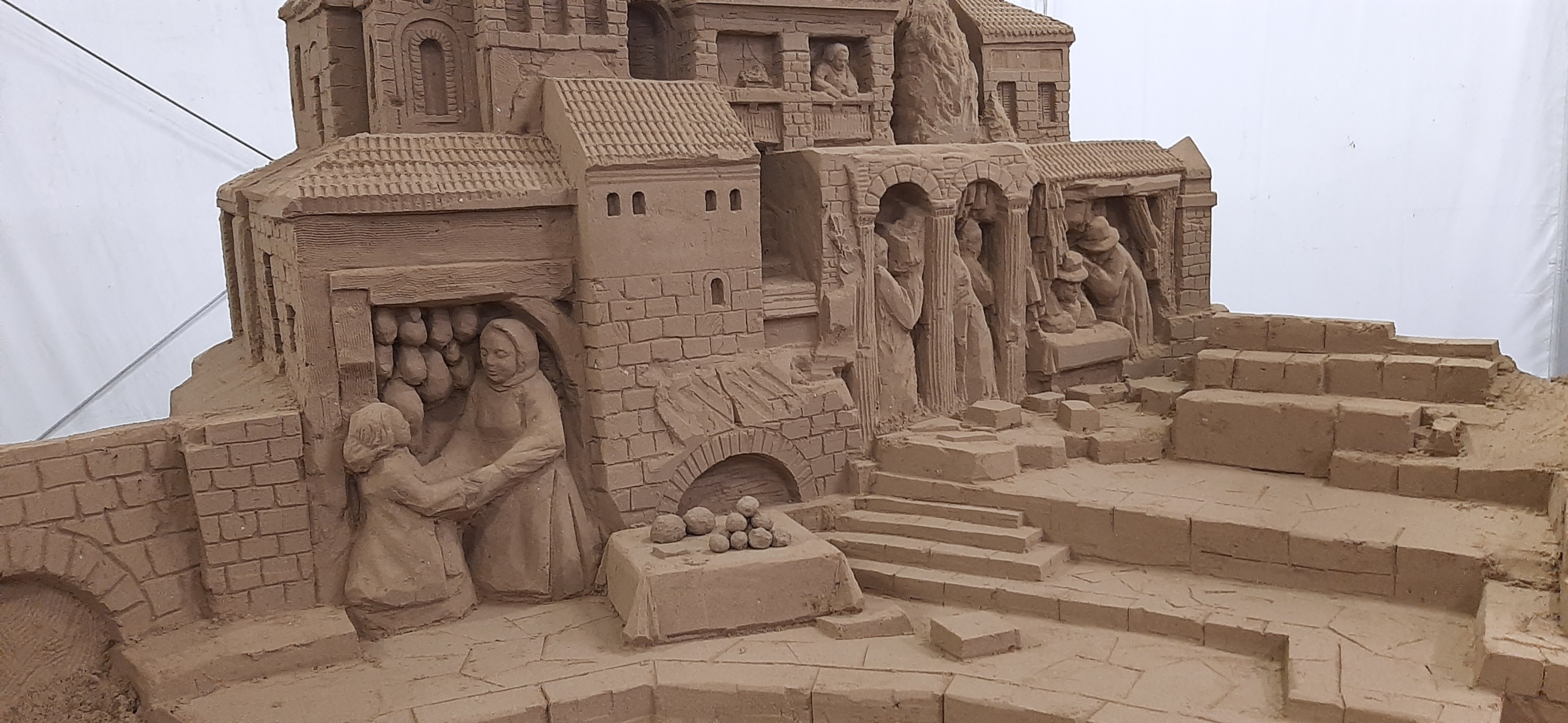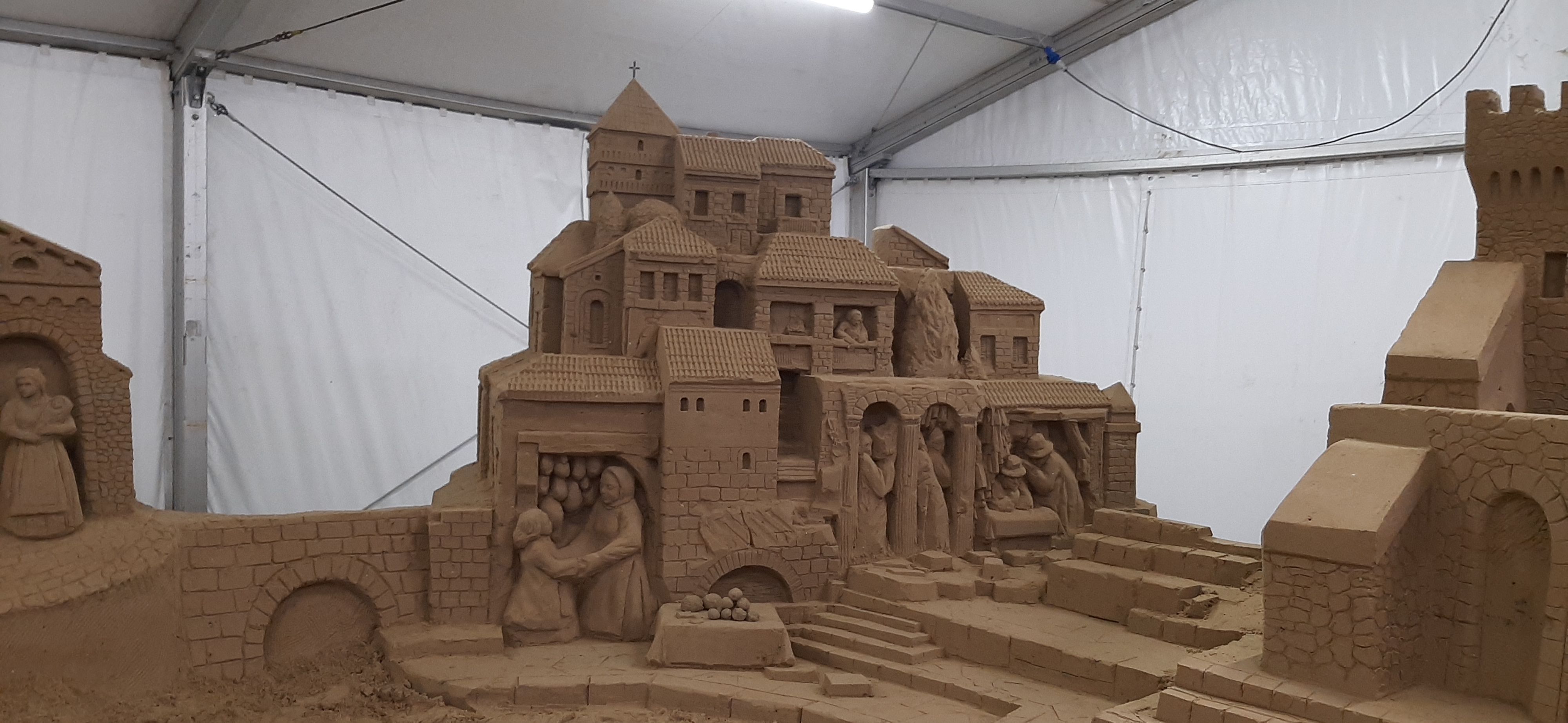 Comincia a prendere forma la sabbia che andrà a comporre le sculture del grande presepe sul mare a Marica Centro. Sono iniziate le attività del team di scultori e artisti della sabbia che stanno dando forma alla tradizione classica napoletana con sculture di sabbia giganti create all’interno della tensostruttura allestita sulla spiaggia libera a due passi da piazzale Boscovich. La Natività con i pastori, gli animali e la vita del villaggio con artigiani e negozianti ora dopo ora si sta arricchendo di dettagli e personaggi per dare vita a scenografici gruppi scultorei, dove ogni gesto ed espressione delle figure rappresentate portano un messaggio di gioia e di attesa. Un lavoro che si potrà vedere in presa diretta il 2 e 3 dicembre con visita al presepe, con gli artisti della sabbia all’opera che mostreranno lo spettacolo unico della “Magia della sabbia" che prende forma. Una proposta in pieno stile natalizio molto attesa da riminesi e visitatori e che torna finalmente sulla spiaggia di Marina Centro dopo un anno di stop dovuto agli effetti della pandemia.