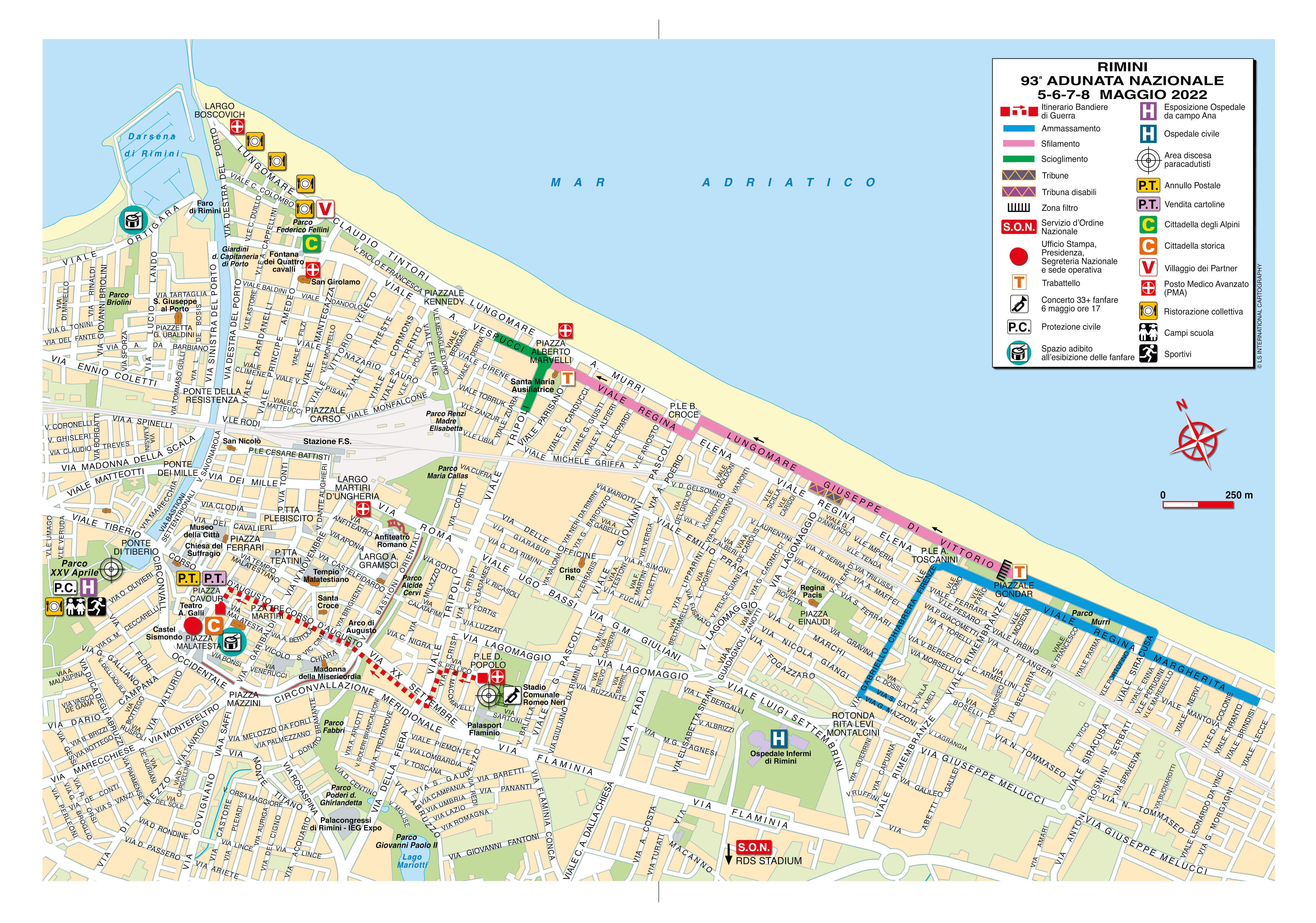 A questo indirizzo https://bit.ly/93AdunataNazionaleAlpini si possono trovare tutte le informazioni utili sull’evento. In considerazione dell’enorme flusso che si riverserà nell’area riminese, è stato definito, in coordinamento con la Prefettura, la Questura, la Polizia Locale, i Vigli del fuoco e l’Asl, il piano per la logistica, la sicurezza e le limitazioni della viabilità. A partire dalla totale interdizione della cosiddetta ‘zona rossa’ a qualunque mezzo nella giornata di domenica 8 maggio e la chiusura di tutte le scuole cittadine nella giornata di sabato 7 maggio.