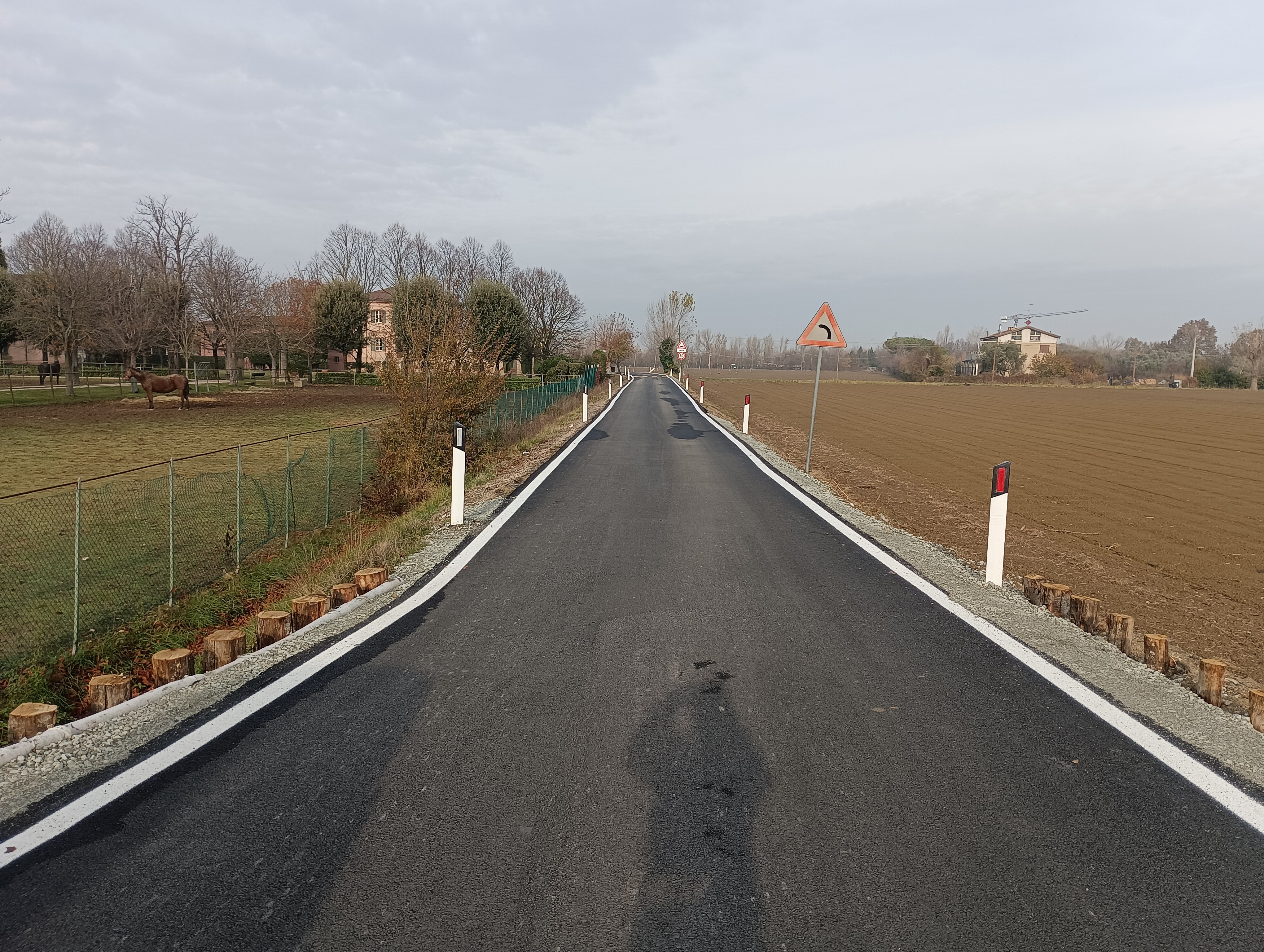 La riqualificazione ha consentito di ripristinare le condizioni di sicurezza delle banchine stradali e il contenimento della scarpata, in corrispondenza del fosso stradale all'innesto su Via Marecchiese, opportunamente allargato per consentire una manovra di ingresso e di uscita più agevole ai veicoli.