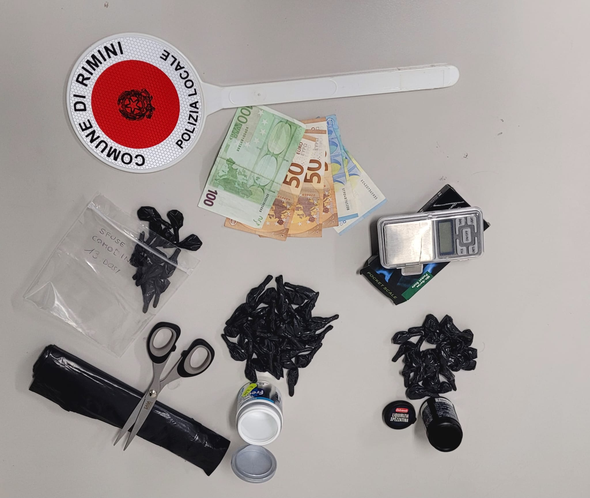 E’ stato trovato con 68 dosi di cocaina il giovane fermato ieri sera dalla Polizia Locale nell’ambito di un servizio di presidio del territorio mirato al contrasto di spaccio di sostanze stupefacenti. Gli agenti della squadra di polizia giudiziaria hanno raggiunto il ragazzo nell’albergo in cui alloggiava dopo aver notato alcuni scambi avuti con un sospetto spacciatore nella zona di via Tripoli, area sottoposta a controllo in seguito ad alcune segnalazioni dei residenti. Al loro ingresso nella stanza, gli agenti hanno subito verificato la presenza di 13 dosi di cocaina lasciati sul comodino, mentre nel corso della perquisizione ne sono state trovate altre decine, nascosti nei barattoli di chewingum e caramelle, portando a 68 il totale delle dosi per complessivi 80 grammi di sostanza stupefacente rinvenuta. La polizia locale ha inoltre sottoposto a sequestro anche il bilancino e il materiale per il confezionamento delle dosi, trovato in un marsupio, oltre ai 300 euro ritenuti proventi dell’attività illecita. Il giovane è stato quindi arrestato per detenzione ai fini di spaccio e comparirà oggi davanti al Tribunale di Rimini per il processo per direttissima.