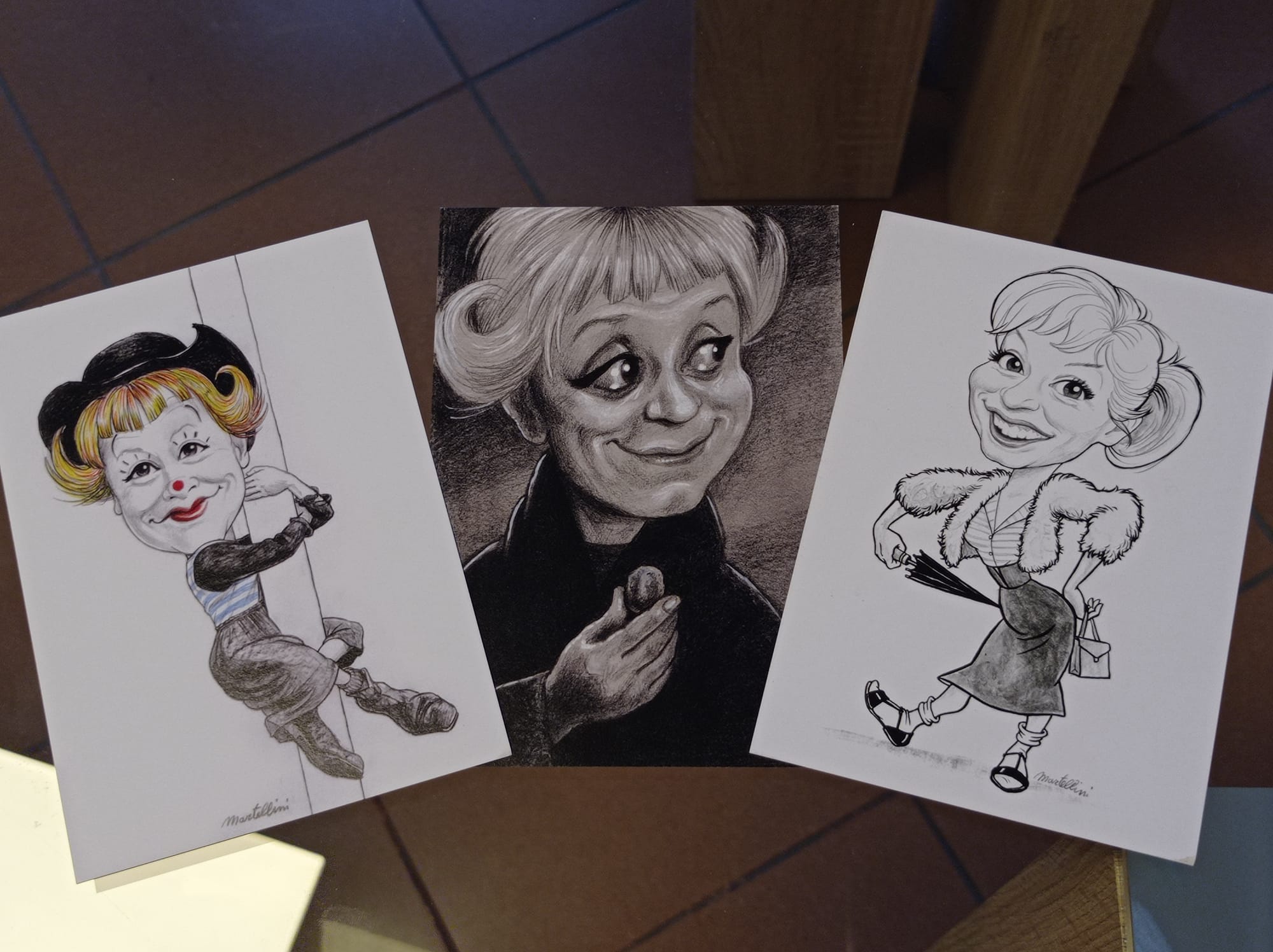 “Sulla Strada con Giulietta”, una serie di caricature di Marco Martellini ispirate al film “La strada” di Fellini. Omaggio a Giulietta Masina nel centenario della nascita.
