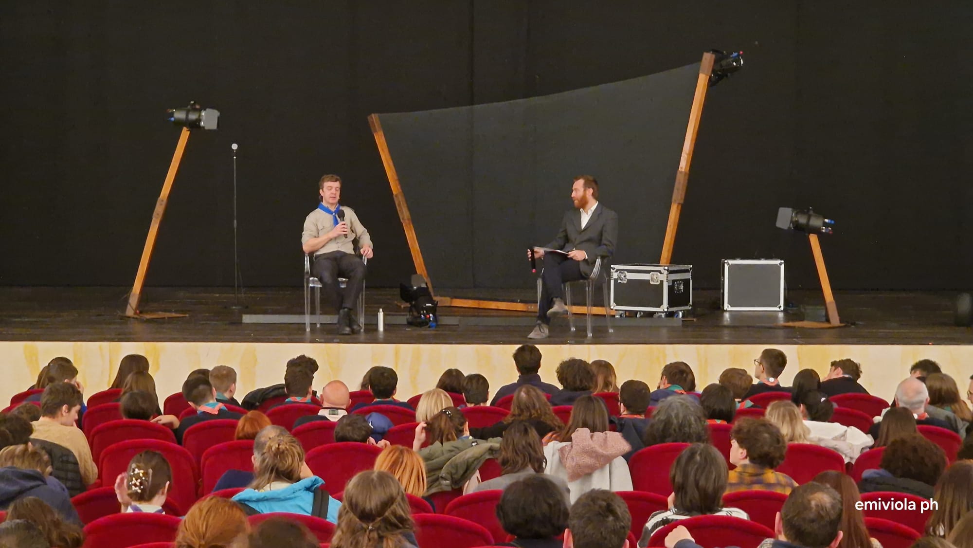 Erano quasi 500 gli scout presenti ieri sera, in un Teatro Galli gremito dalla platea al loggione. Giovani e capi scout, che con le loro camicie azzurre e i loro 'fazzolettoni' arrotolati, coi colori del gruppo di appartenenza, sono rimasti seduti per quasi due ore, immedesimandosi nella storia di altri giovani che indossavano la stessa divisa in un'altra epoca.