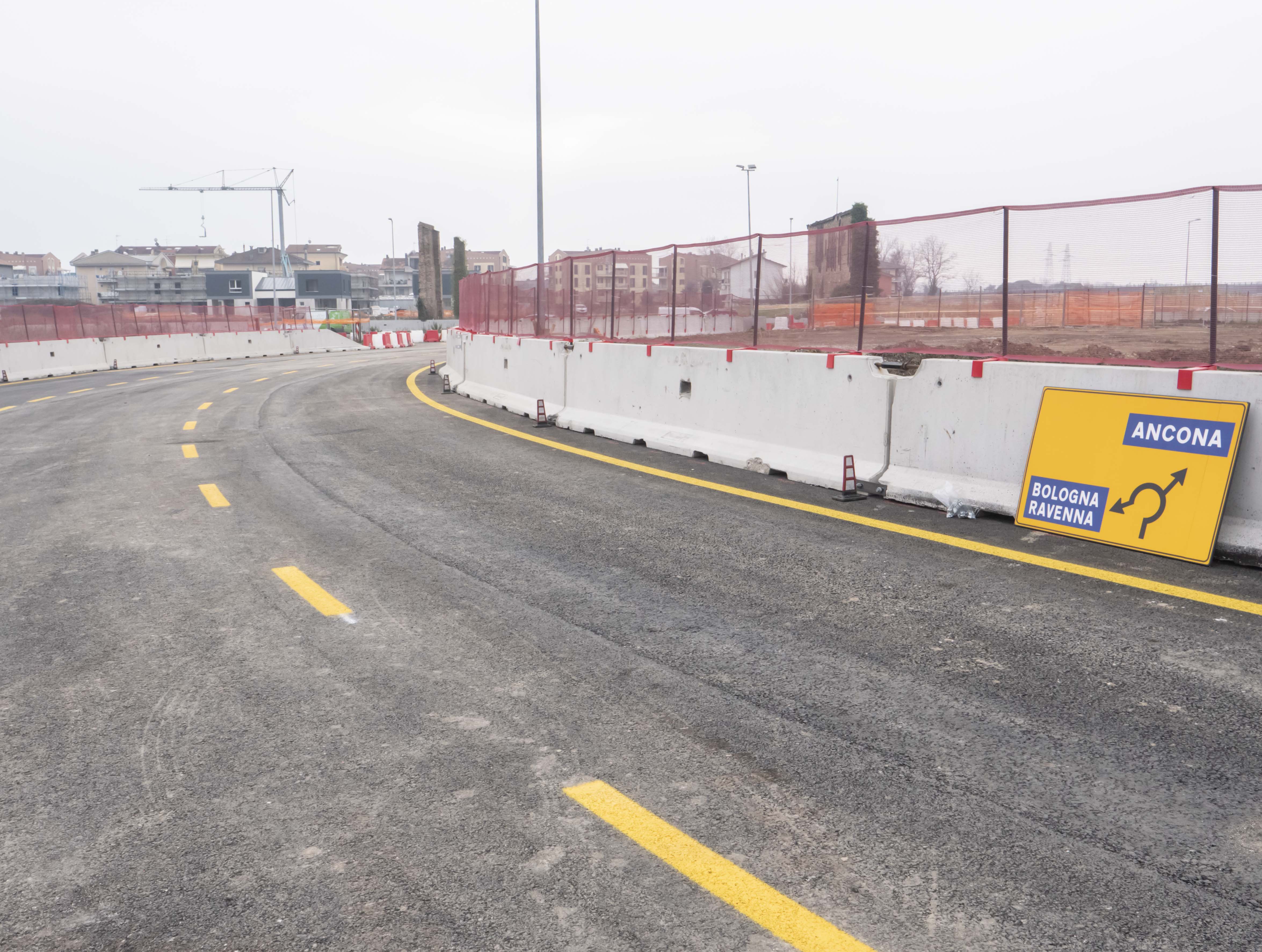Si tratta di un piccolo beneficio sulla circolazione della rotatoria, seppure ancora parziale, solo un anticipo degli indubbi benefici che porteranno i cantieri, su cui sta lavorando la società Autostrade sulla statale 16, una volta che saranno completati i lavori. Un piano di opere che consentiranno, grazie a un investimento di circa 10 milioni di euro, di ricucire la storica frattura del territorio, compattando la città a mare e a monte dell’Adriatica. La nuova maxi rotatoria all'intersezione tra SS16 e SS72 (Consolare di San Marino), è stata progettata con un diametro di più di 100 metri e agevolerà il collegamento sia verso il centro e sia verso San Marino.