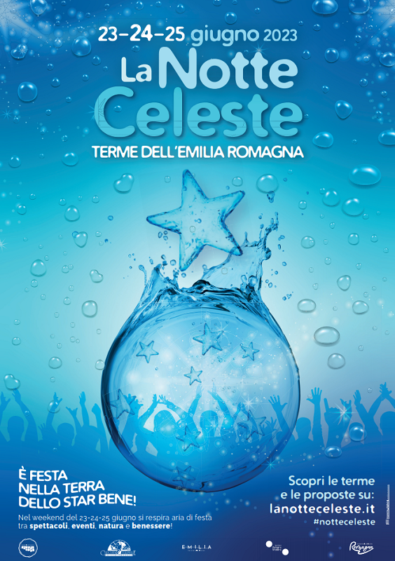 Torna la Notte Celeste, la festa italiana dedicata alle Terme, al benessere naturale, alle acque curative, evento unico in Italia. In Emilia-Romagna si fa festa per tre giorni consecutivi in 19 località e in 24 centri termali, da Salsomaggiore (Pr) a Riccione (Rn) con spettacoli, musica, eventi natura, momenti benessere, piscine termali aperte la sera. A Rimini la festa coinvolge Riminiterme ed offre ai turisti l'opportunità di vivere un giorno speciale, colorato di celeste come i colori dell'acqua e di essere accolti dalle atmosfere uniche dell'ambiente termale. Questi gli appuntamenti: