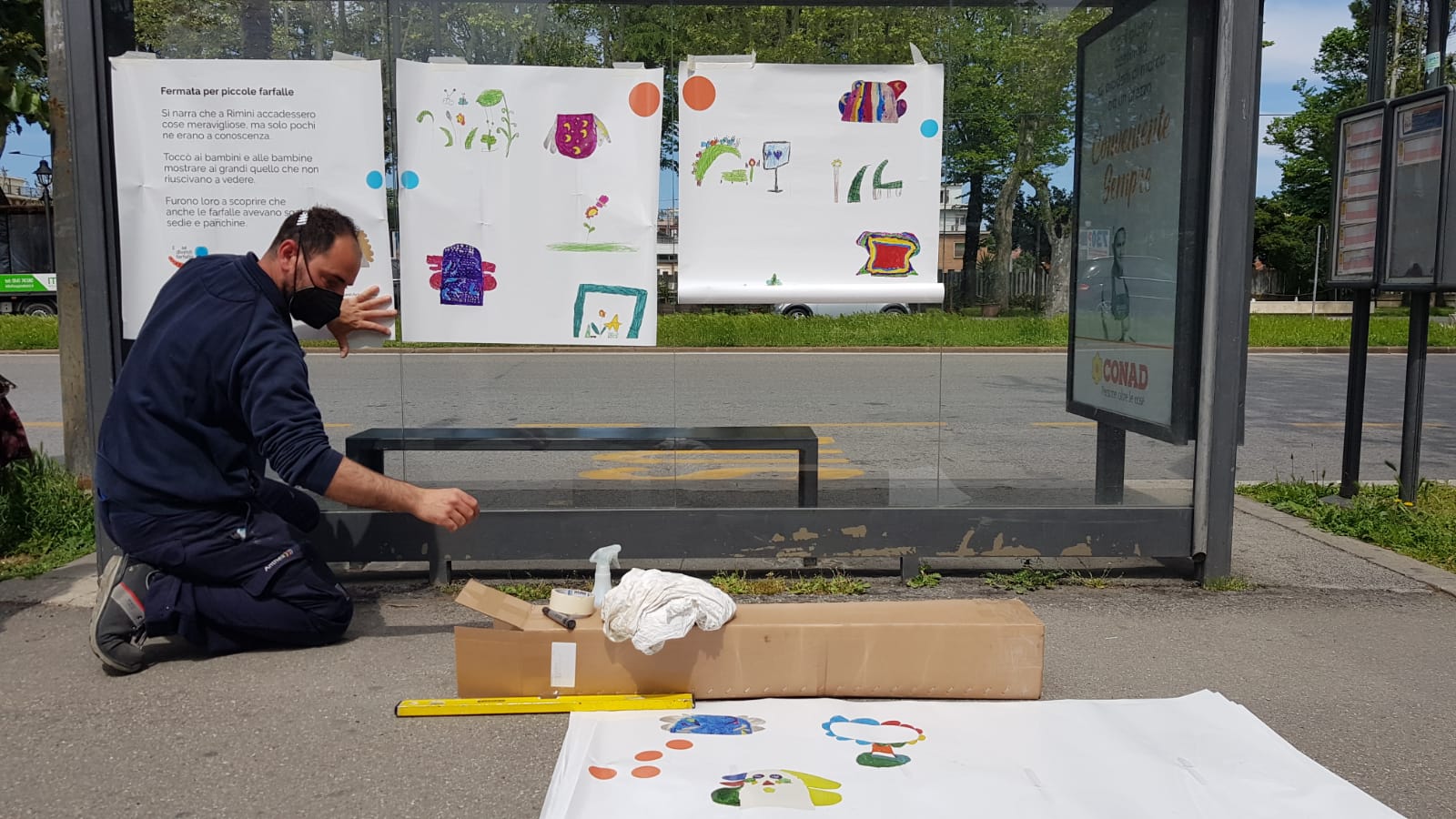 Il Belvedere di piazzale Kennedy, il parco che si affaccia sull’arco d’Augusto, via Gambalunga e viale Cesare Battisti sono i luoghi della città che in questi giorni hanno visto le pensiline con fermata colorarsi dei disegni e della fantasia dei bambini, nell’ambito dell'iniziativa "Sala d'attesa per farfalle".