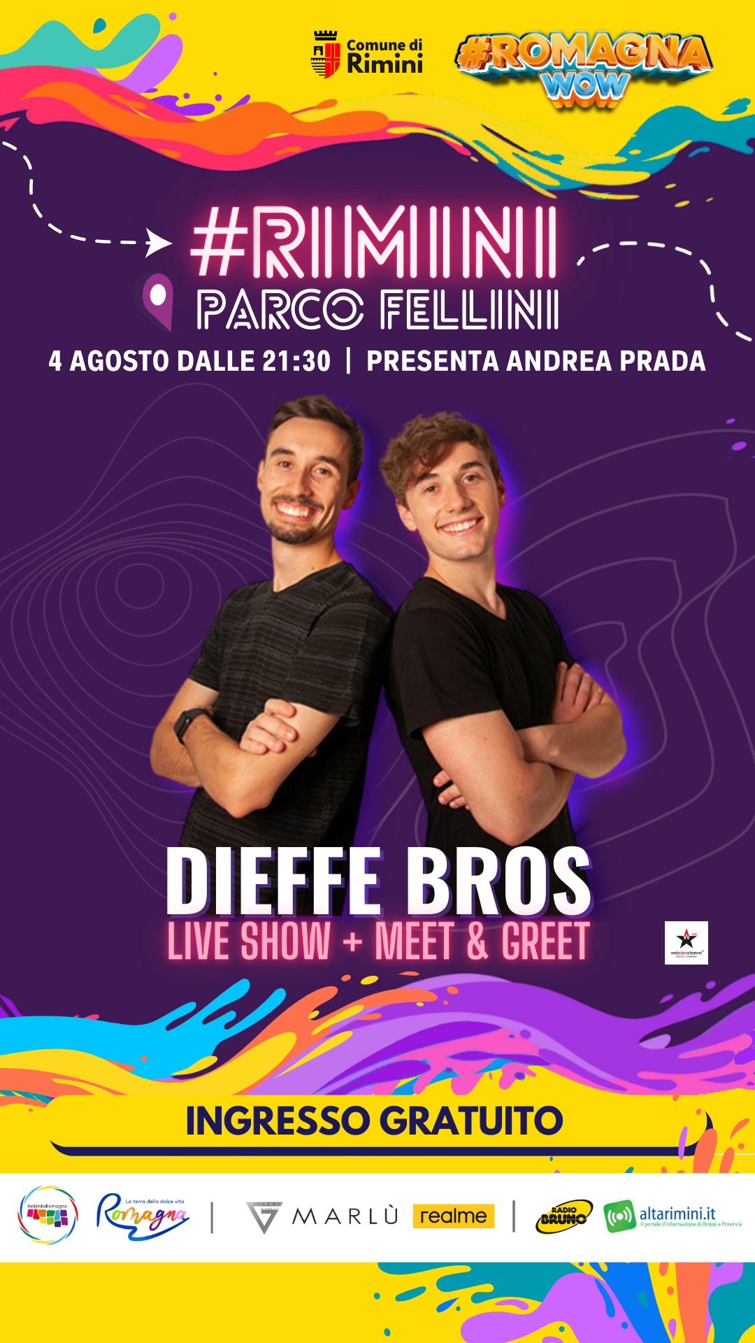 Protagoniste in piazzale Fellini le due giornate dedicate agli appartenenti della Generazione Z e Alpha che avranno l’opportunità di incontrare i loro idoli tra youtuber, tiktoker e content creator. Si parte venerdì 4 agosto con il Meet&Greet dei diEFFE BROS, due fratelli che grazie al loro canale di YouTube fanno impazzire milioni di followers. Per partecipare al Live Show e Meet&Greet è necessario ritirare i pass (venerdì 4 agosto i pass si ritirano dalle ore 15.00 al Palco di Parco Fellini).