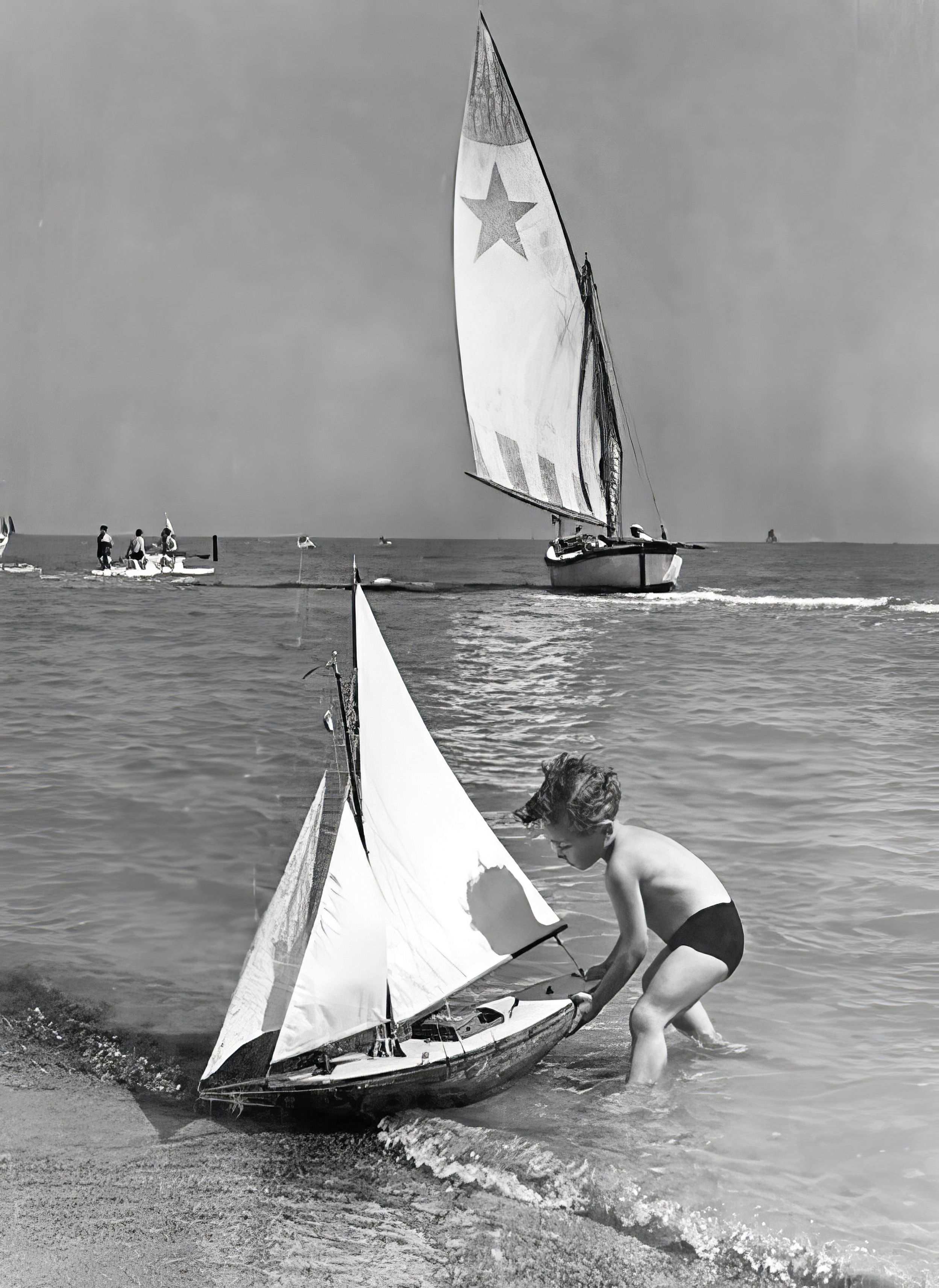E ancora, la rapida e prodigiosa ripartenza postbellica alla fine degli anni Quaranta, lo spazio della spiaggia che si riempie al perfezionarsi dell’organizzazione dei servizi di spiaggia. E i grandi bagni di folla, momenti indimenticabili di euforia collettiva, dal Corso dei Fiori (1957), alla Mototemporada (1970) fino alla Notte Rosa.