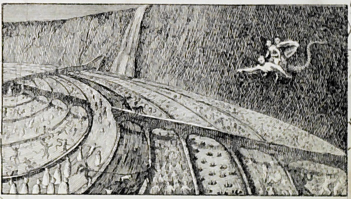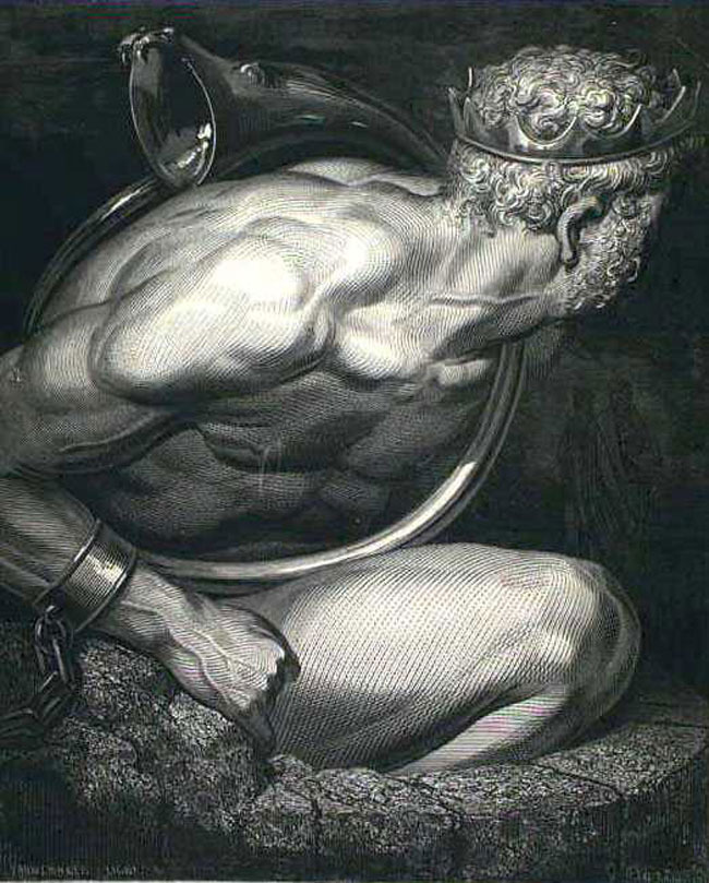 L'immaginario dantesco prende vita nelle illustrazioni di Paul Gustave Louis Christophe Doré, che nelle sue celebri incisioni della Divina Commedia amplifica il senso del fantastico e del sovrannaturale. Nella rappresentazione di Nembrot, il gigante appare come un colosso mostruoso, con un'espressione ottusa e bestiale, il corpo massiccio che emerge dalle tenebre e proporzioni spropositate rispetto a Dante e Virgilio, che appaiono minuscoli ai suoi piedi. Nella tavola dell’edizione Sonzogno del 1869, conservata alla Gambalunga, il tratto drammatico di Doré esalta la potenza visiva del poema dantesco, con un sapiente uso di ombre e prospettive che conferisce alla scena un’aura di inquietante grandiosità.