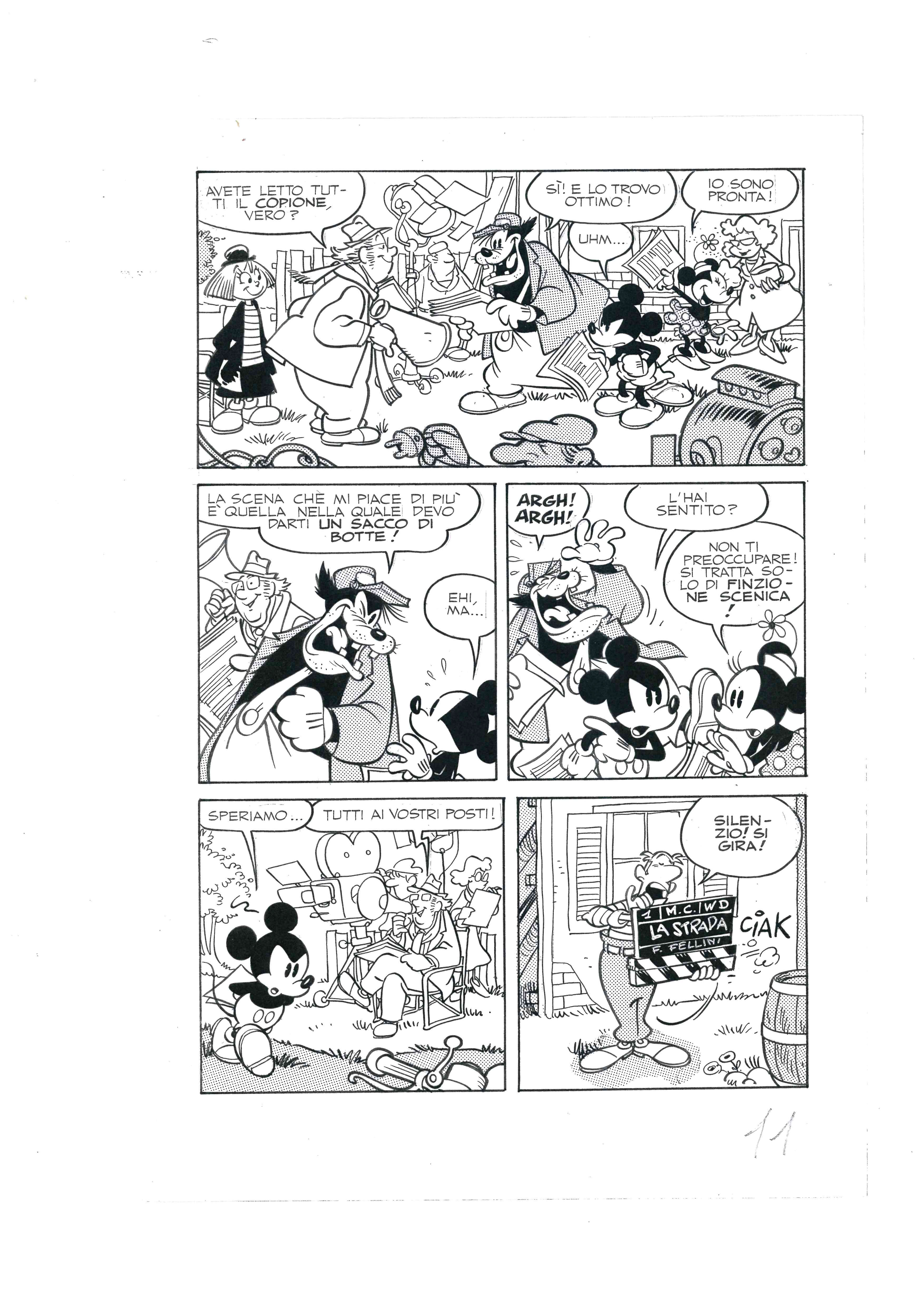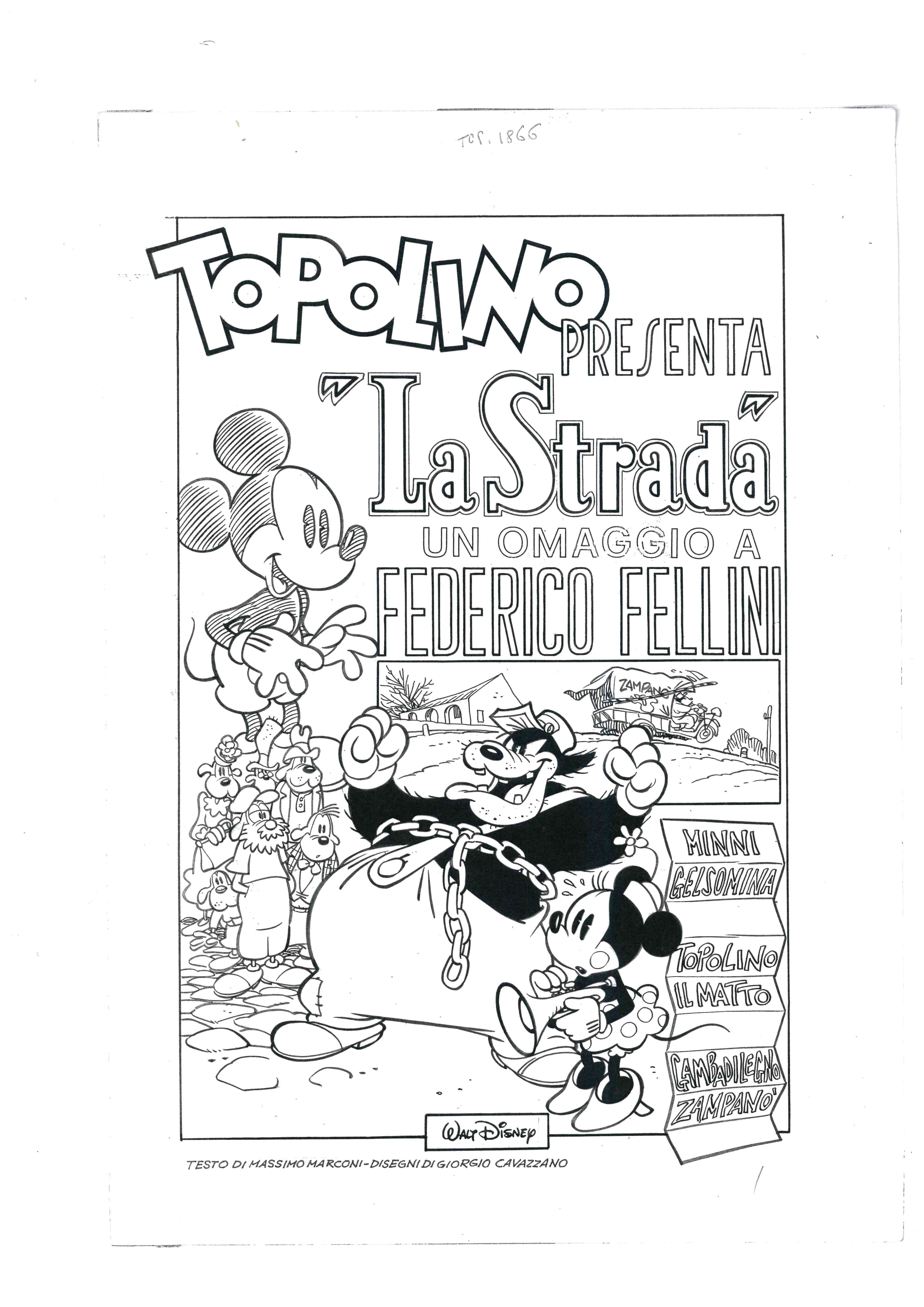 L’innesco è offerto dal magico incontro fra uno dei disegnatori “Disney moderni” in attività oggi più celebri, Giorgio Cavazzano, e Federico Fellini, avvenuto in occasione della realizzazione della versione a fumetti del film La Strada del 1954. L’ormai celebre “Grande Parodia Disney Topolino presenta La Strada”, disegnata appunto da Cavazzano e sceneggiata da Massimo Marconi, uscì sul numero 1866 di “Topolino” nel Settembre 1991. Fellini all’epoca non soltanto diede l’autorizzazione ad essere ritratto nella storia, ma inviò anche un proprio disegno autografo di ringraziamento alla redazione di “Topolino”.