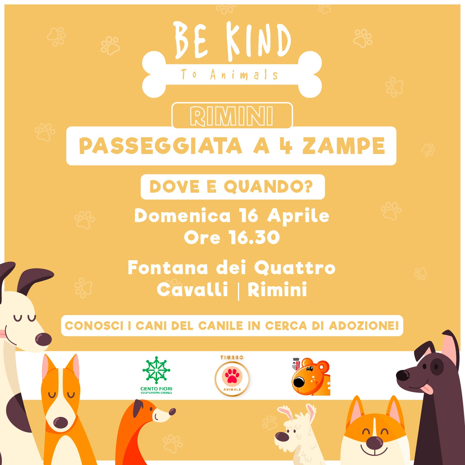 "Passeggiata a 4 zampe": è questo il titolo nella nuova iniziativa organizzata dal Canile comunale Stefano Cerni, in collaborazione con Be Kind Rimini, in programma domenica 16 aprile, alle ore 16.30, con ritrovo presso la Fontana dei Quattro Cavalli di Marina Centro.