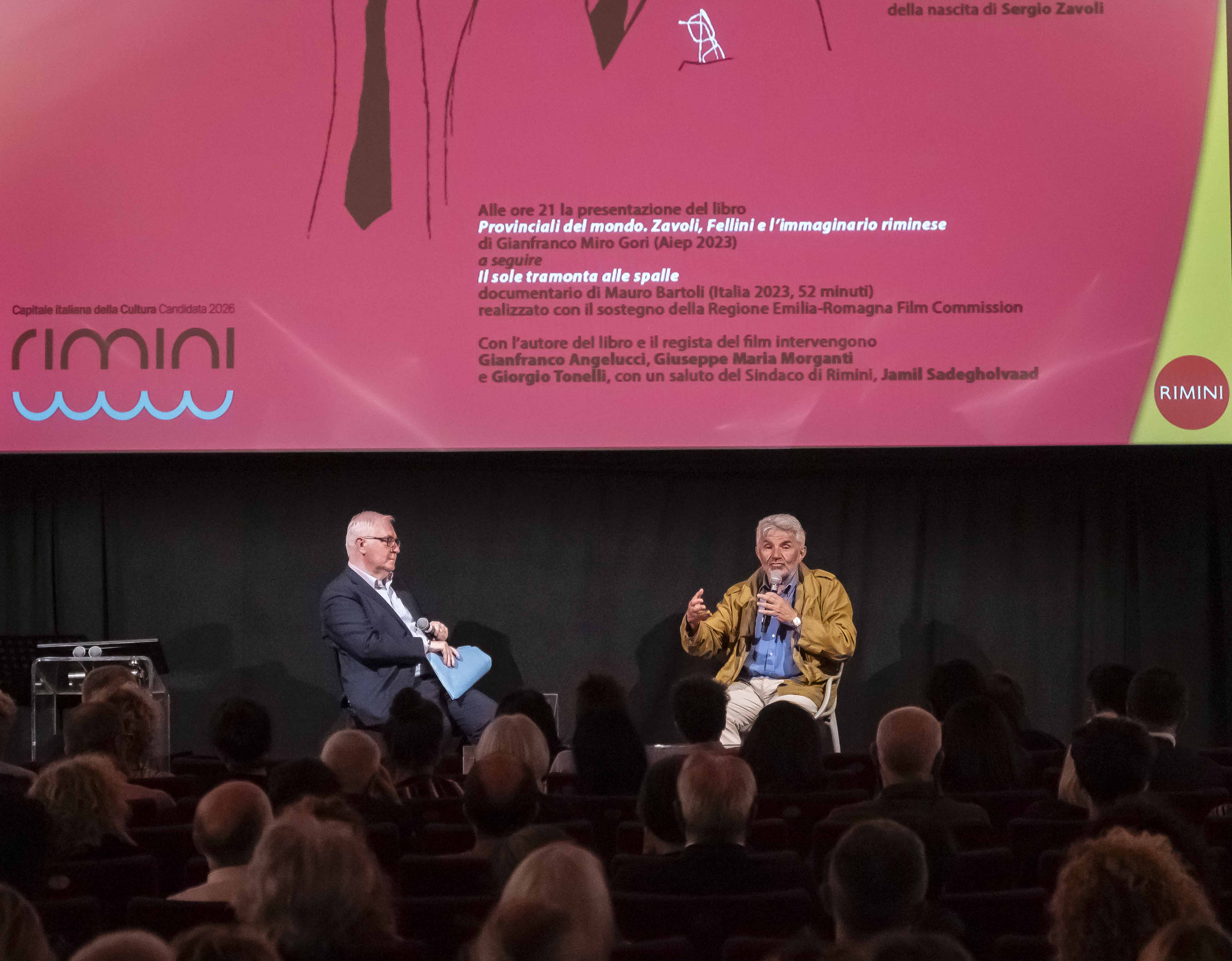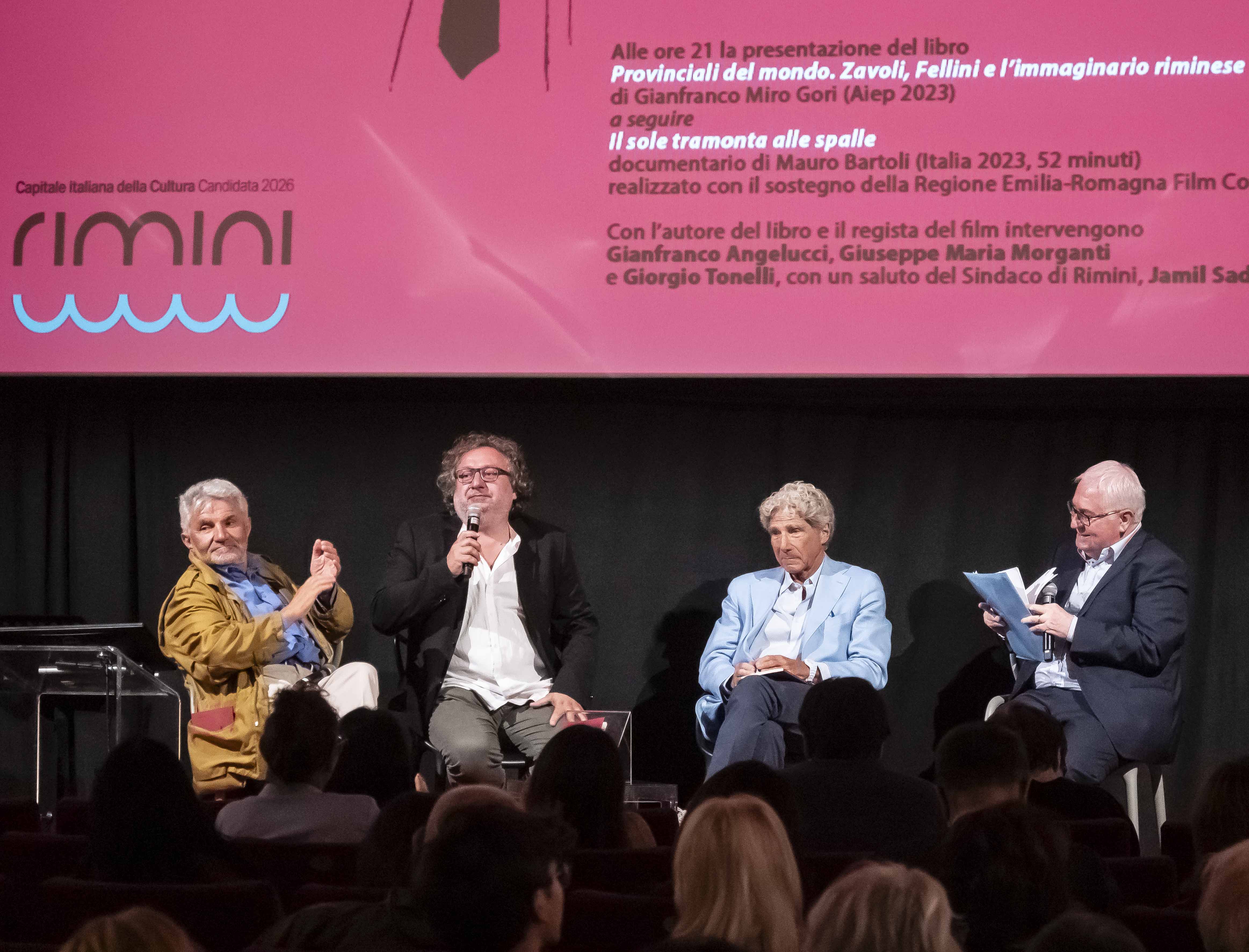 Con l'autore del libro e con il regista del film sono intervenuti Gianfranco Angelucci, Giuseppe Maria Morganti e Giorgio Tonelli, preceduti dal saluto del Sindaco di Rimini, Jamil Sadegholvaad. Un momento intenso, alla presenza degli amici più cari e della figlia del giornalista, Valentina Zavoli, che ha visto ripercorrere in maniera ampia e dettaglia il rapporto personale di Zavoli con Fellini e di entrambi con Rimini, l’identità della città, le sue radici, il suo destino di provincia.