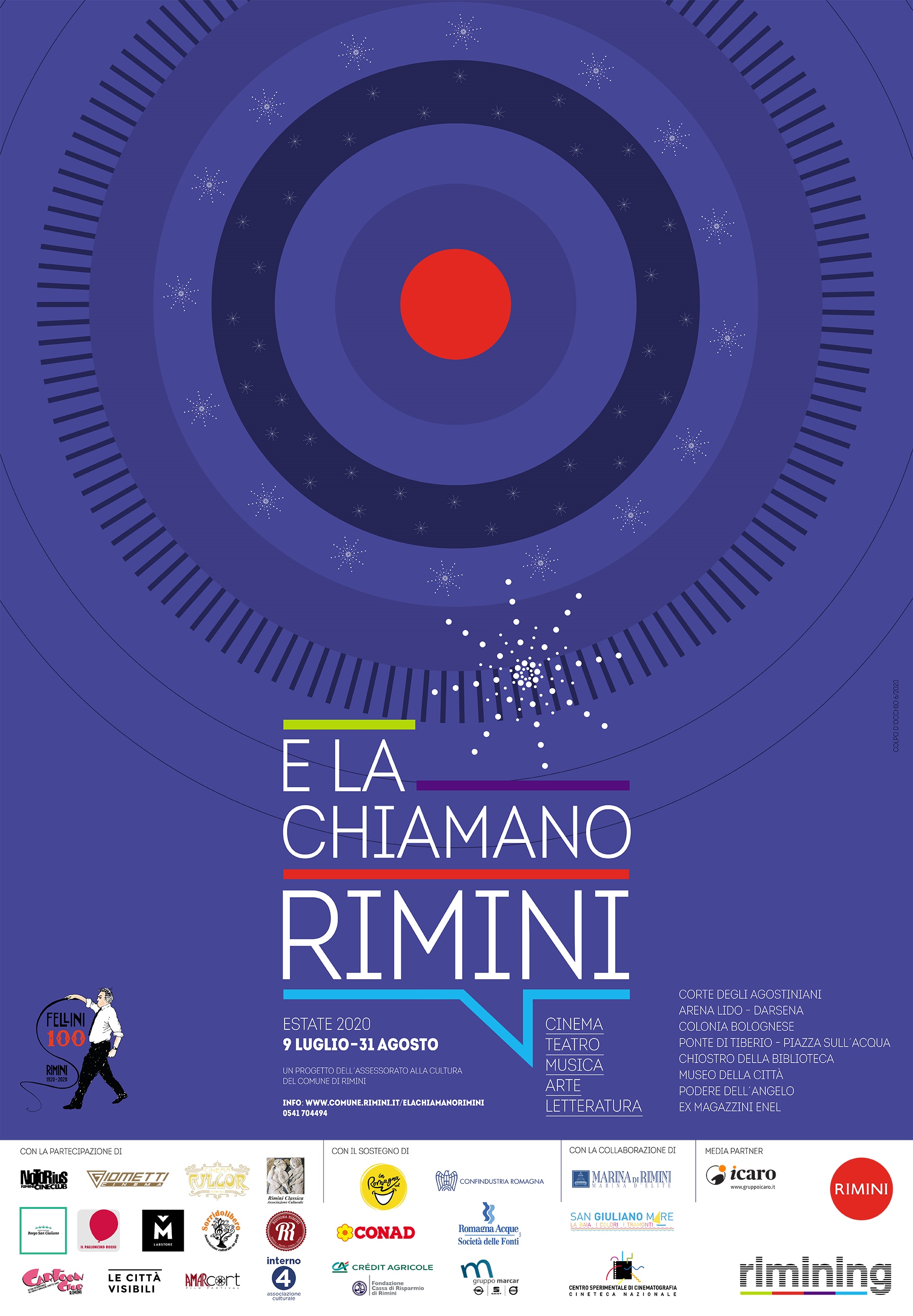 “E la chiamano Rimini” è un progetto del Comune di Rimini con la partecipazione di Notorius Cineclub, Giometti Cinema, Cinema Fulgor, Rimini Classica, associazione Borgo San Giuliano, il Palloncino Rosso, Matrioska Labstore, Associazione Sorridolibero, Risuona Rimini, Cartoon Club, Le città visibili, Amarcort Film Festival, Associazione culturale Interno 4.