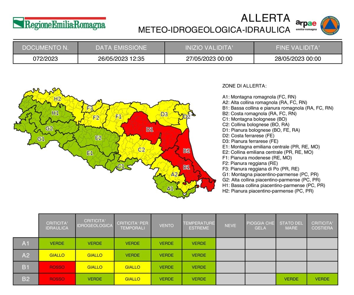 La protezione civile regionale ha diffuso una allerta meteo “rossa” per criticità idraulica e “gialla” per criticità temporali per domani.