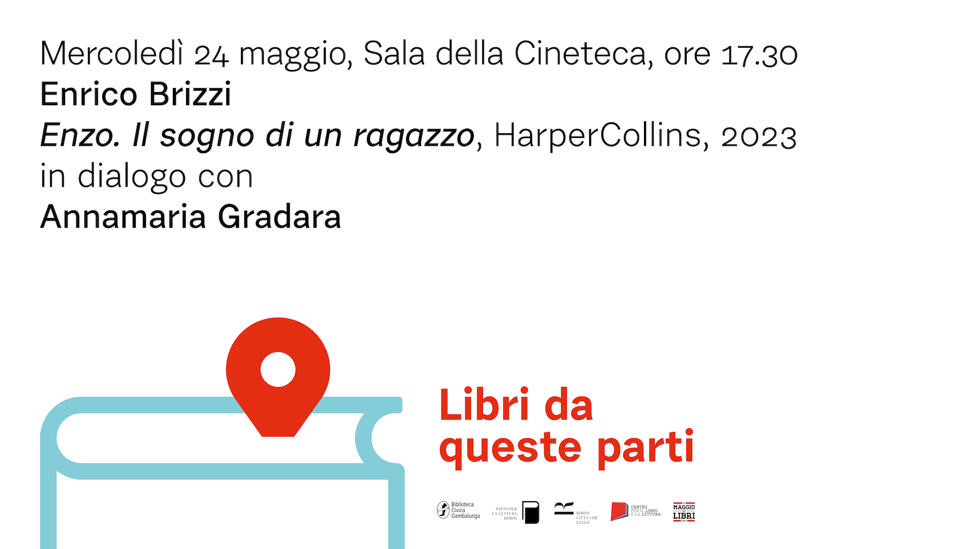 Mercoledì 24 maggio alle ore 17.30 alla Cineteca comunale (via Gambalunga, 27) l’appuntamento della rassegna “Libri da queste parti 2023”, organizzata dalla Biblioteca Gambalunga, ha come protagonista lo scrittore Enrico Brizzi, con il suo nuovo romanzo ENZO. Il sogno di un ragazzo appena uscito in libreria per HarperCollins.