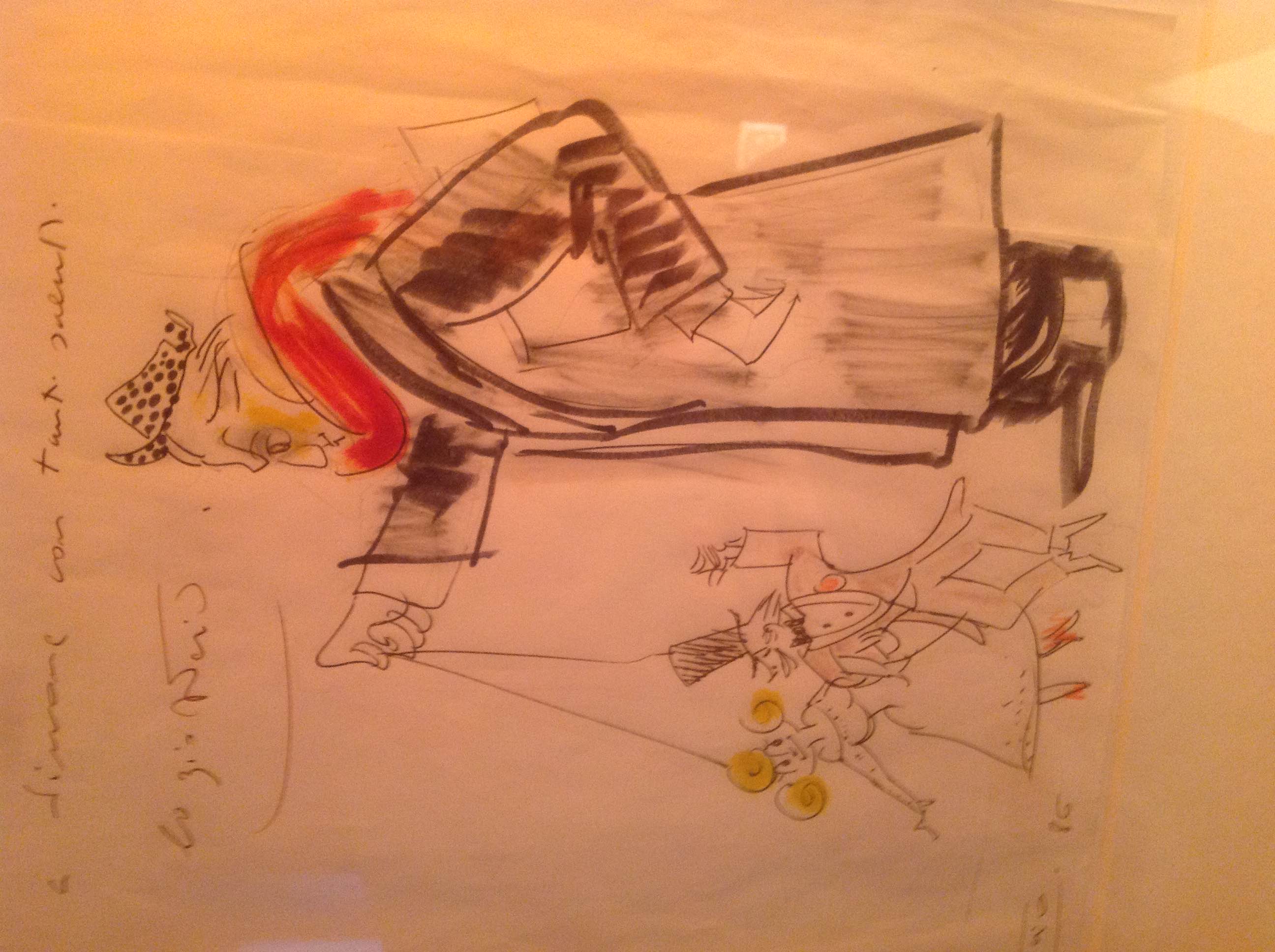 Il disegno è stato sempre un momento fondamentale dell’arte di Fellini: la sua prima espressione, la più diretta della sua voglia di raccontare, il primo contatto con il film durante la sua preparazione, il modo per fissare qualche idea mentre iniziava ad esplorare il mondo in cui stava per introdursi.
