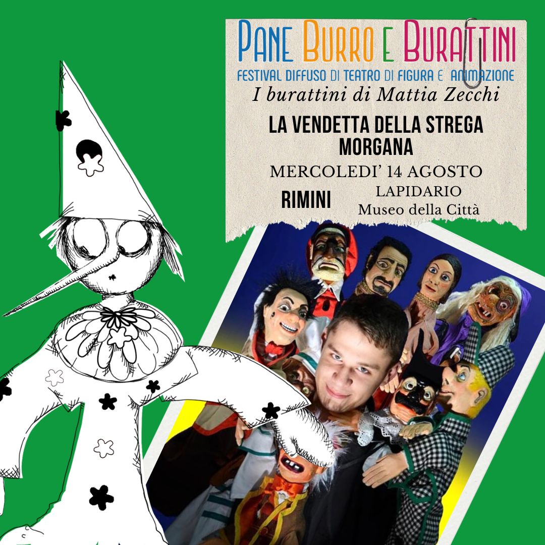 Per la rassegna teatrale dedicata ai più piccoli, ideata da Fratelli Di Taglia in collaborazione con Arcipelago Ragazzi e con il sostegno di Regione Emilia-Romagna, mercoledì 14 agosto vanno in scena I Burrattini di Mattia che presentano LA VENDETTA DELLA STREGA MORGANA, uno spettacolo della tradizione emiliana con grande coinvolgimento di pubblico.