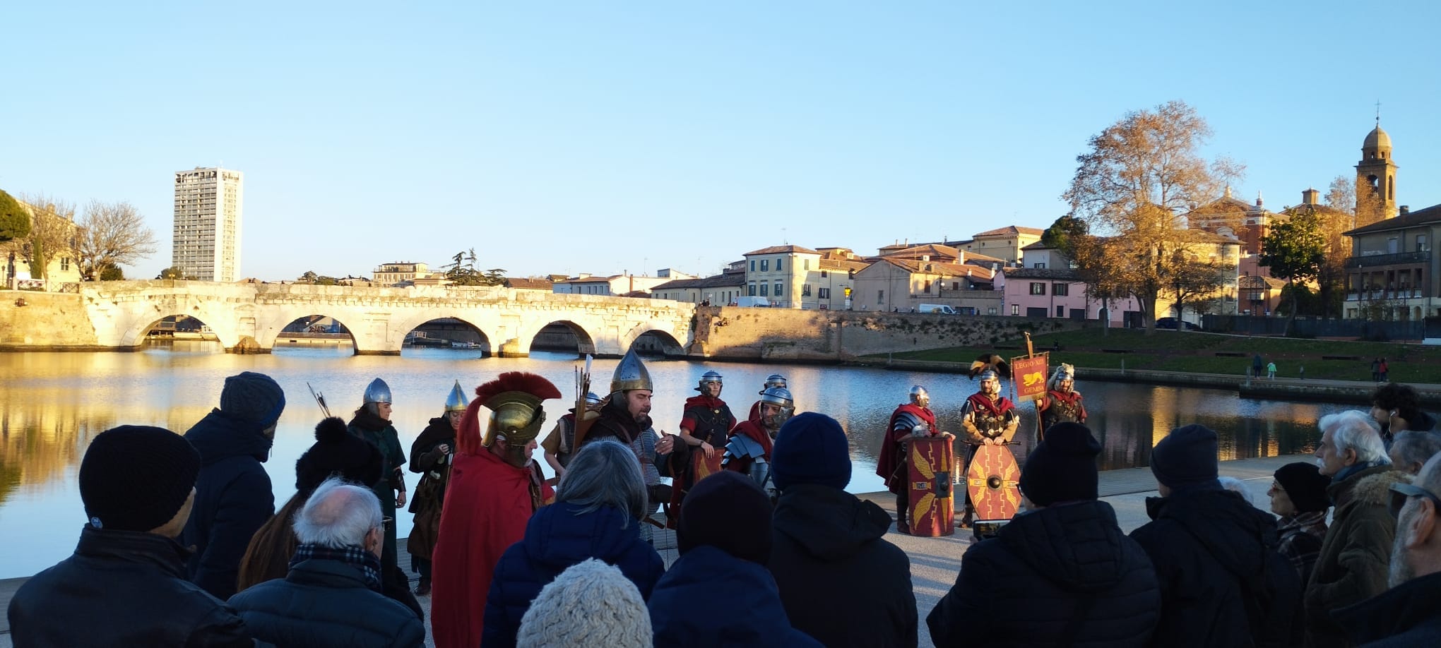 A Rimini si svolse uno dei momenti decisivi della vita di Giulio Cesare e di tutta la storia romana: il passaggio del Rubicone. A Rimini Cesare arringò ai suoi valorosi uomini, i legionari della Tredicesima Legione, i "Leoni della Gallia Cisalpina". La rievocazione, inizialmente prevista il 7 gennaio, ma rimandata per maltempo, parte dalla Piazza sull’Acqua al Ponte di Tiberio e percorrendo in corteo il decumano giunge all’antico foro romano (piazza Tre Martiri). Si potrà respirare l'atmosfera suggestiva della storia romana e seguire la marcia insieme ai legionari romani, a fianco ai loro grandi scudi. A cura della Legio XIII Gemina.