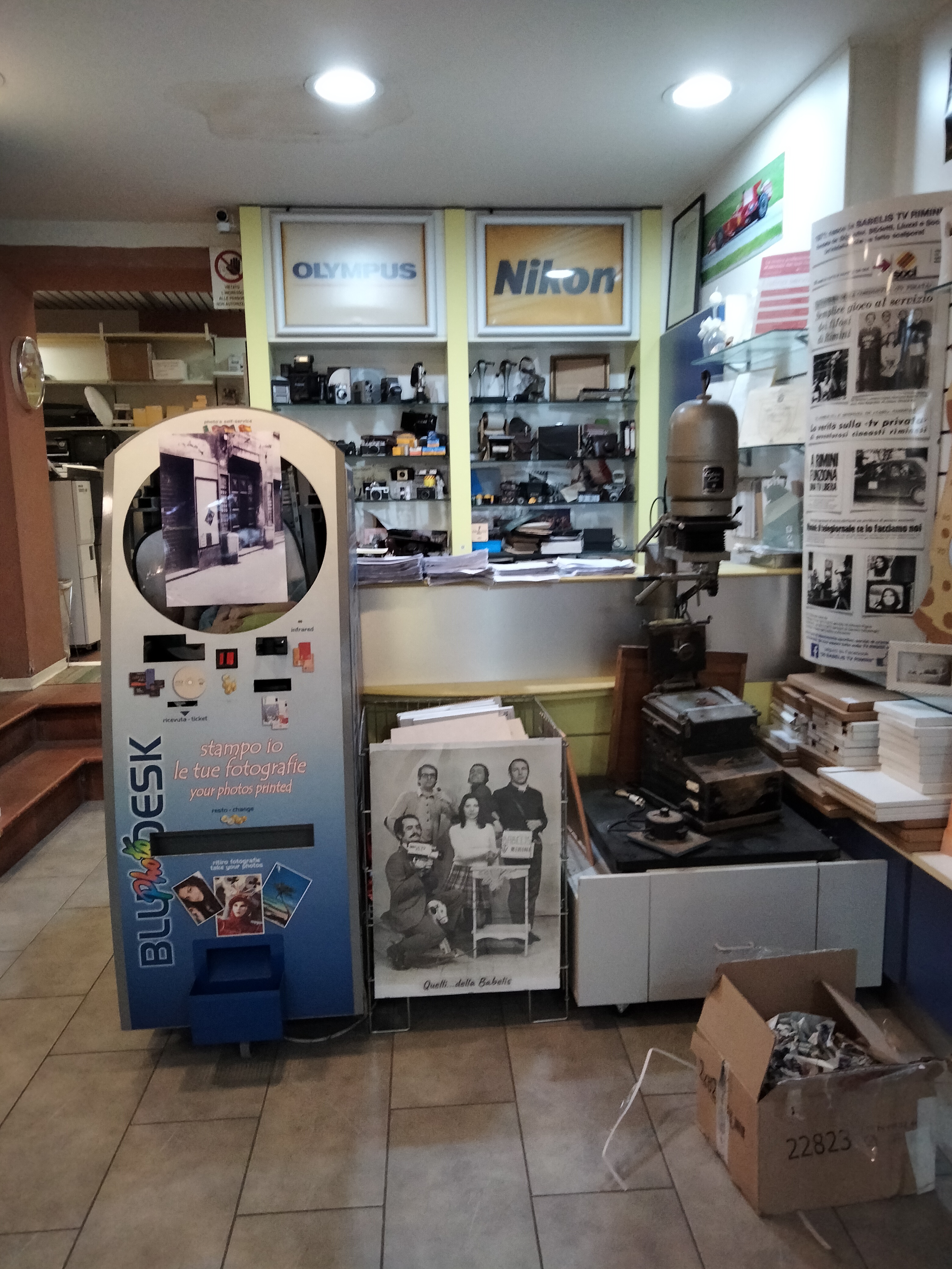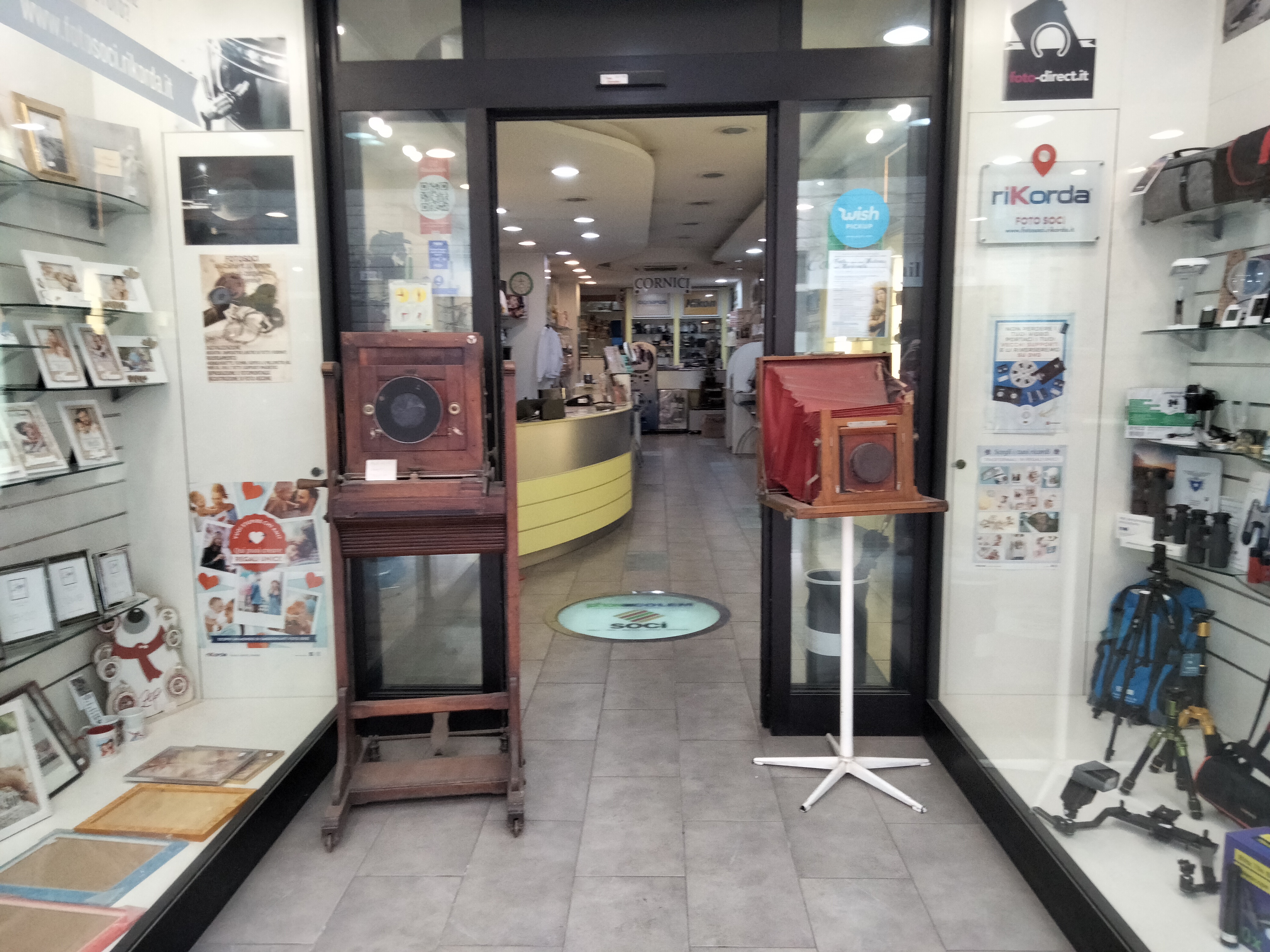 Entrando nel negozio di via Cairoli si respira ancora oggi la storia, accolti da due grandi macchine fotografiche storiche dell’800 e di inizio ‘900, sono presenti varie attrezzature storiche per lo sviluppo e la stampa, un ingranditore e una piccola stampante in legno, oltre alle immagini alle pareti che attraversano la storia dell’attività della famiglia.