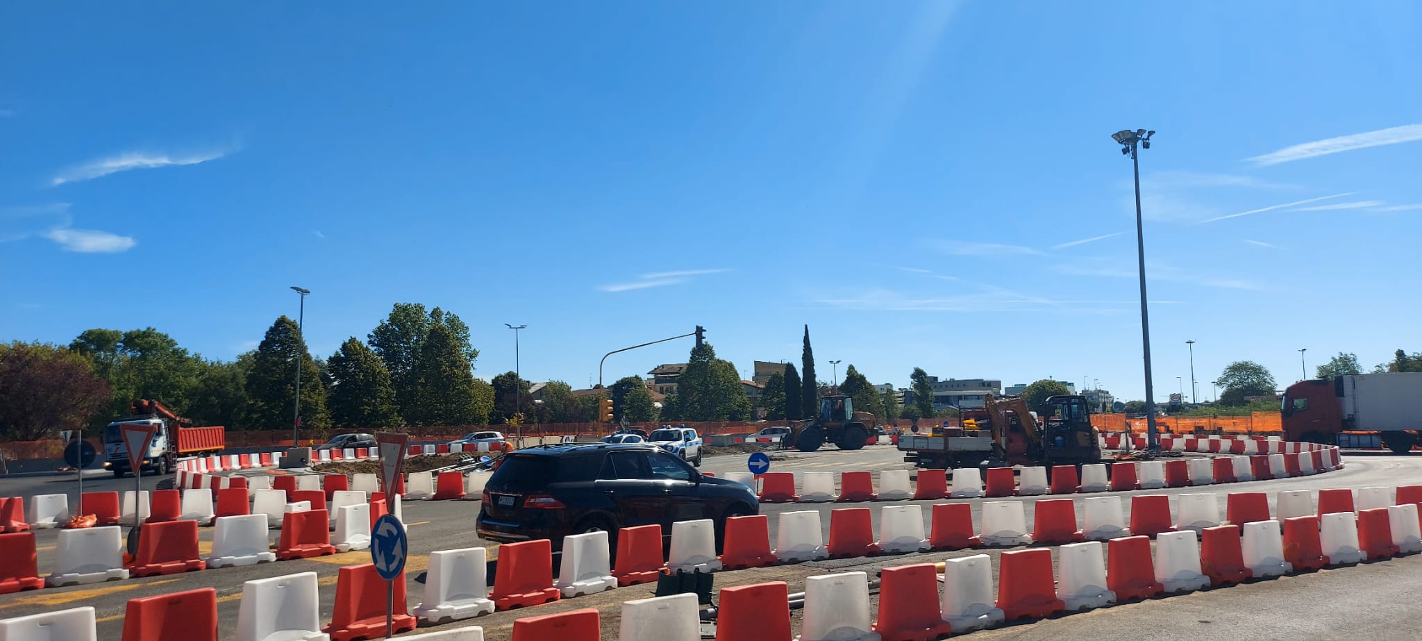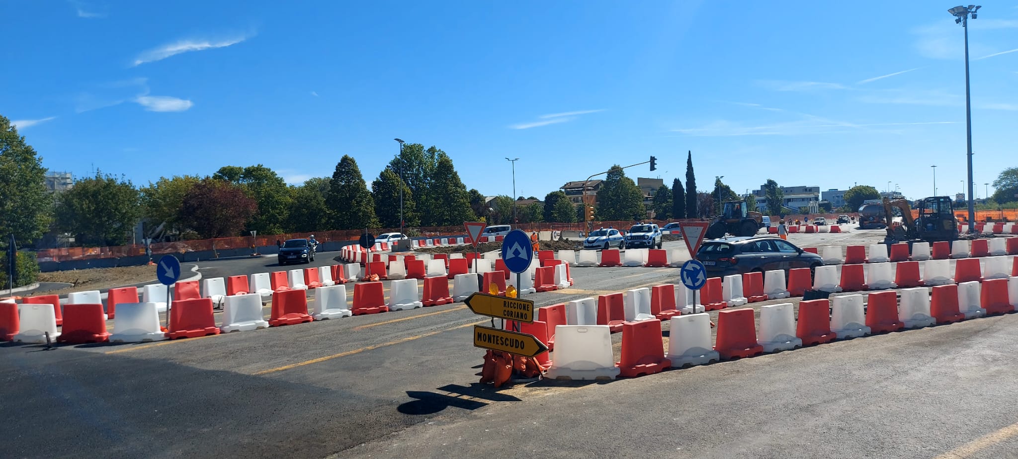 Una soluzione temporanea che, rispetto alla soluzione che sarebbe dovuta entrare in funzione tra qualche settimana, include ancora qualche aspetto da sistemare, come la limitazione sulla circolazione di via Montescudo, sulla quale insiste attualmente una parte del cantiere, che per ora non può essere percorsa provenendo dalla interno della rotatoria, ma solo arrivando dalla SS16 lato Ravenna. Nella versione definitiva la rotatoria avrà anche due corsie, ora ridotte ad una per esigenze di cantiere.