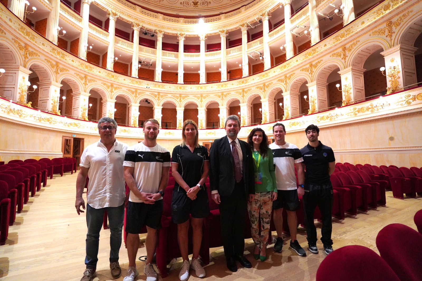 Un’occasione per dare loro il benvenuto da parte di tutta la città di Rimini, conoscersi e scambiarsi alcune considerazioni sulla loro preparazione atletica in vista dell’evento sportivo internazionale, oltre che parlare della bellezza della città e dell’accoglienza ricevuta a Rimini, che sta attualmente ospitando questa importante competizione con più di 1200 atleti, allenatori e giudici di Trampolino elastico, double-mini trampoline e Tumbling provenienti da 35 nazioni diverse.