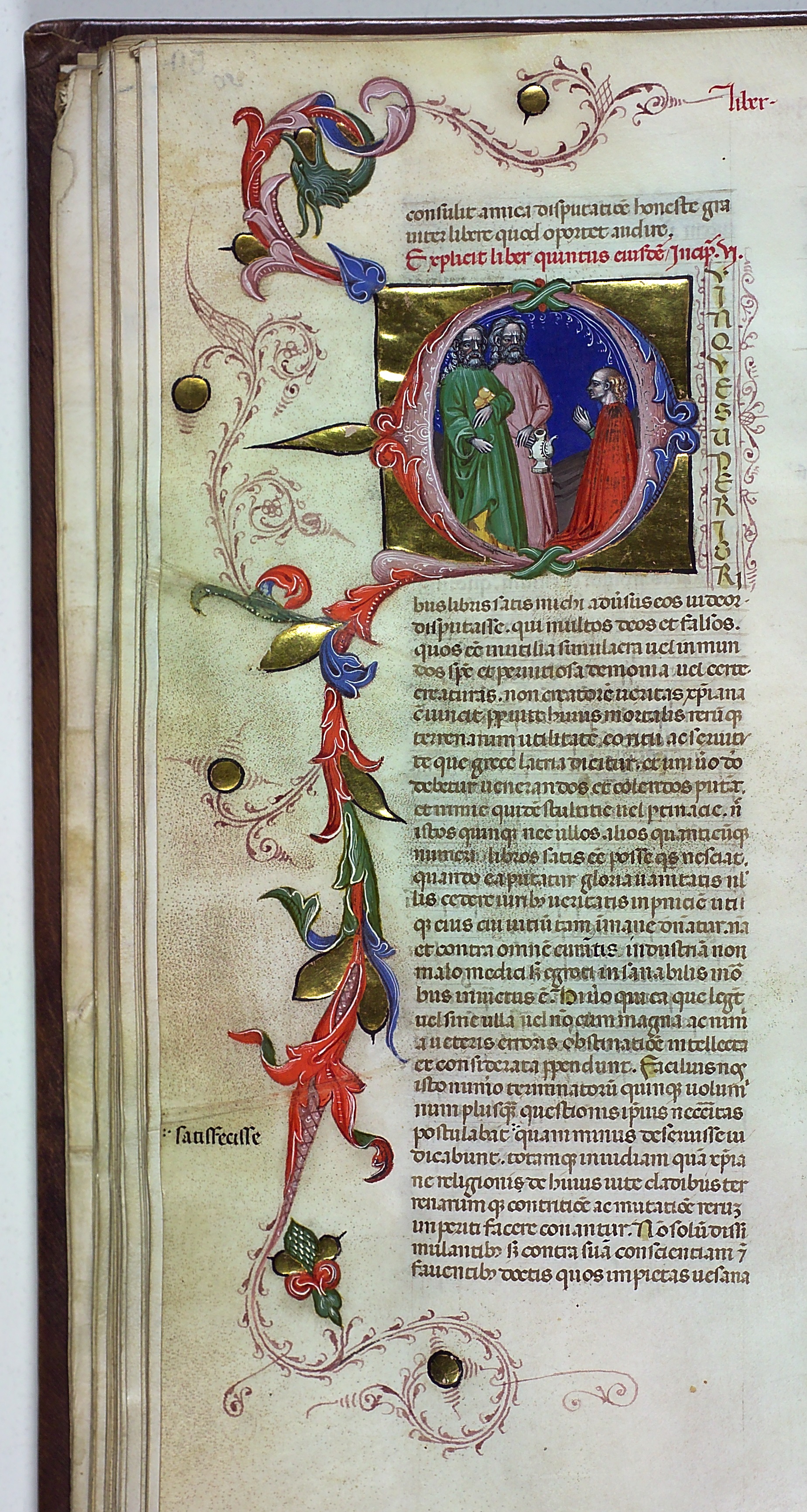 Giovedì 10 novembre i professori dell’Università di Bologna Simonetta Nicolini e Vincenzo Gheroldi illustreranno e sveleranno i segreti delle splendide miniature del codice quattrocentesco del De Civitate Dei di S. Agostino. L’esemplare della celebre opera di Aurelio Agostino, scritta tra il 413 e il 426, depositato in Gambalunga dalla Confraternita di S. Girolamo, è un corposo volume di 242 carte, arricchito da iniziali figurate e fregi. Fu copiato da Donnino di Borgo di San Donnino che lascia la sua sottoscrizione alla fine del manoscritto, il nostro scriptor lavorava alla corte di Pandolfo III Malatesta quando era ancora signore di Bergamo e Brescia.