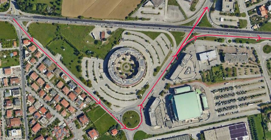 L'accesso al Colosseo avverrà percorrendo la via Coriano da mare, pertanto per chi proviene da monte si suggerisce di percorre la Via Montescudo in direzione mare e di riportarsi sulla Via Coriano prima dell'intersezione con la Statale 16.