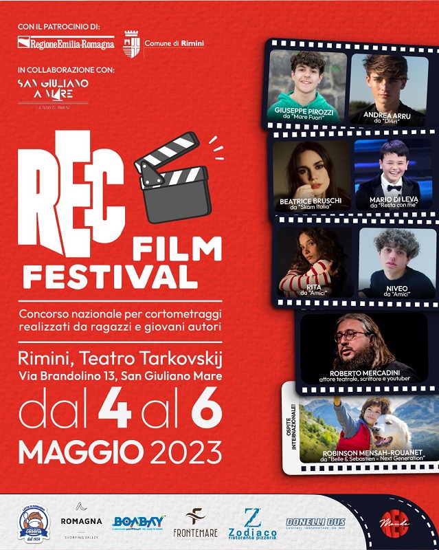 Concorso nazionale per cortometraggi realizzati da ragazzi e giovani autori di età compresa tra i 18 e i 29 anni, promosso da “Mondo REC” con il patrocinio di Regione Emilia Romagna e Comune di Rimini. Sul palcoscenico del Teatro Tarkovskij, sono protagoniste opere cinematografiche indipendenti create da accademie, scuole, associazioni, case di produzione e da singoli cineasti esordienti. Dodici i film in concorso, selezionati tra oltre cento titoli pervenuti da tutta Italia, che affrontano tematiche spesso forti e significative come libertà, amicizia, orientamento sessuale, deep web, bullismo e molto altro. Durante gli spettacoli oltre alle proiezioni dei film in gara, trovano spazio esibizioni musicali, canzoni dal vivo, coreografie ed ospiti. Tra i personaggi: il cantante Niveo e la ballerina Rita (dall’ultima edizione del talent-show “Amici”), l’attore Giuseppe Pirozzi (alias “Micciarella” nella serie “Mare Fuori”), Mario Di Leva (protagonista della fiction Rai “Resta con me”), il giovane interprete francese Robinson Mensah-Rouanet (dal film “Belle & Sebastien – Next Generation”) e ancora Andrea Arru (dalla serie Netflix “Diari”), Beatrice Bruschi (“Skam Italia”) e l’attore, youtuber e scrittore Roberto Mercadini. Nel corso della kermesse, verrà presentato, fuori concorso, il nuovo film prodotto da “Mondo REC” e interamente ambientato in Romagna: “Tra le stelle e il mare – Ritorno a Pietrarubbia”, un commovente lungometraggio sul bullismo. Teleromagna trasmetterà in diretta televisiva la serata finale, sabato 6 maggio dalle ore 20.30 (Canale 14 del digitale terrestre e in streaming su www.teleromagna.it