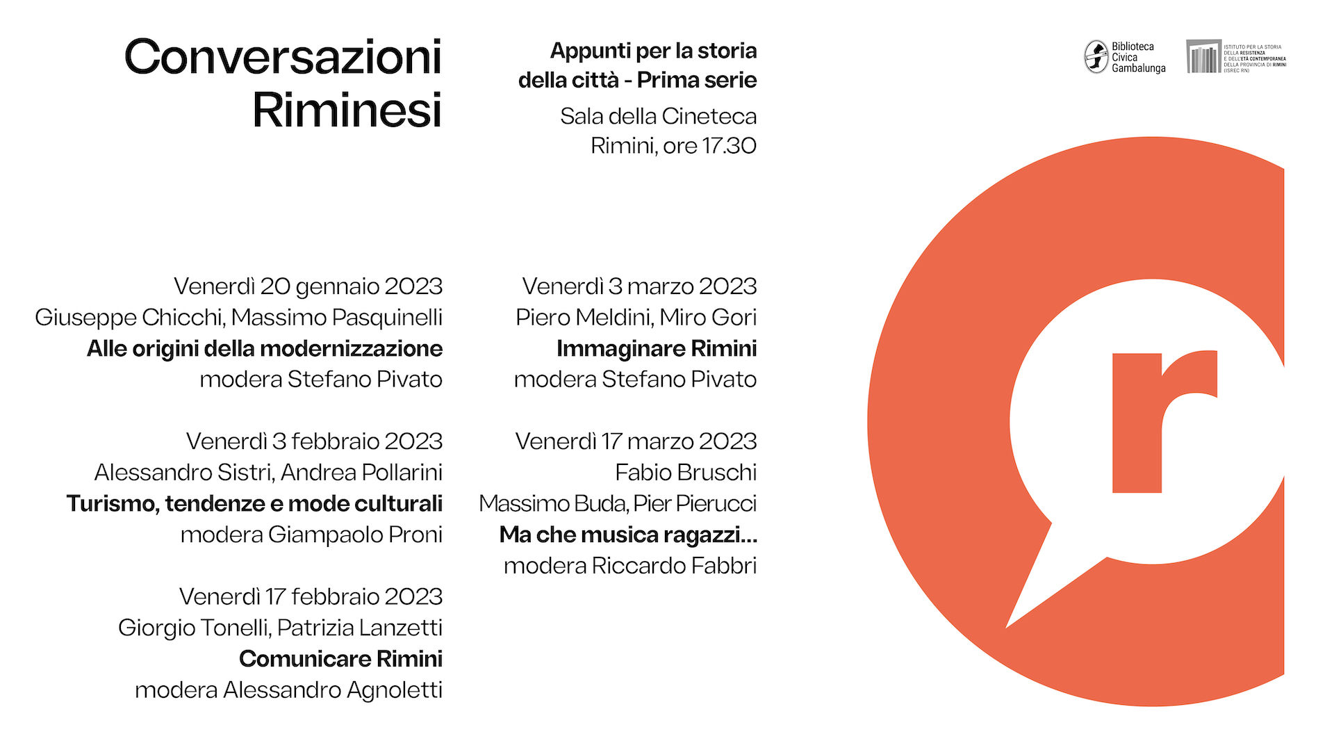Per il ciclo Conversazioni Riminesi, venerdì 3 marzo l'istituto per la storia della Resistenza e dell’Italia contemporanea in collaborazione con la Biblioteca Gambalunga propone un incontro dal titolo 'Immaginare Rimini', con Piero Meldini e Miro Gori. Modera Stefano Pivato.