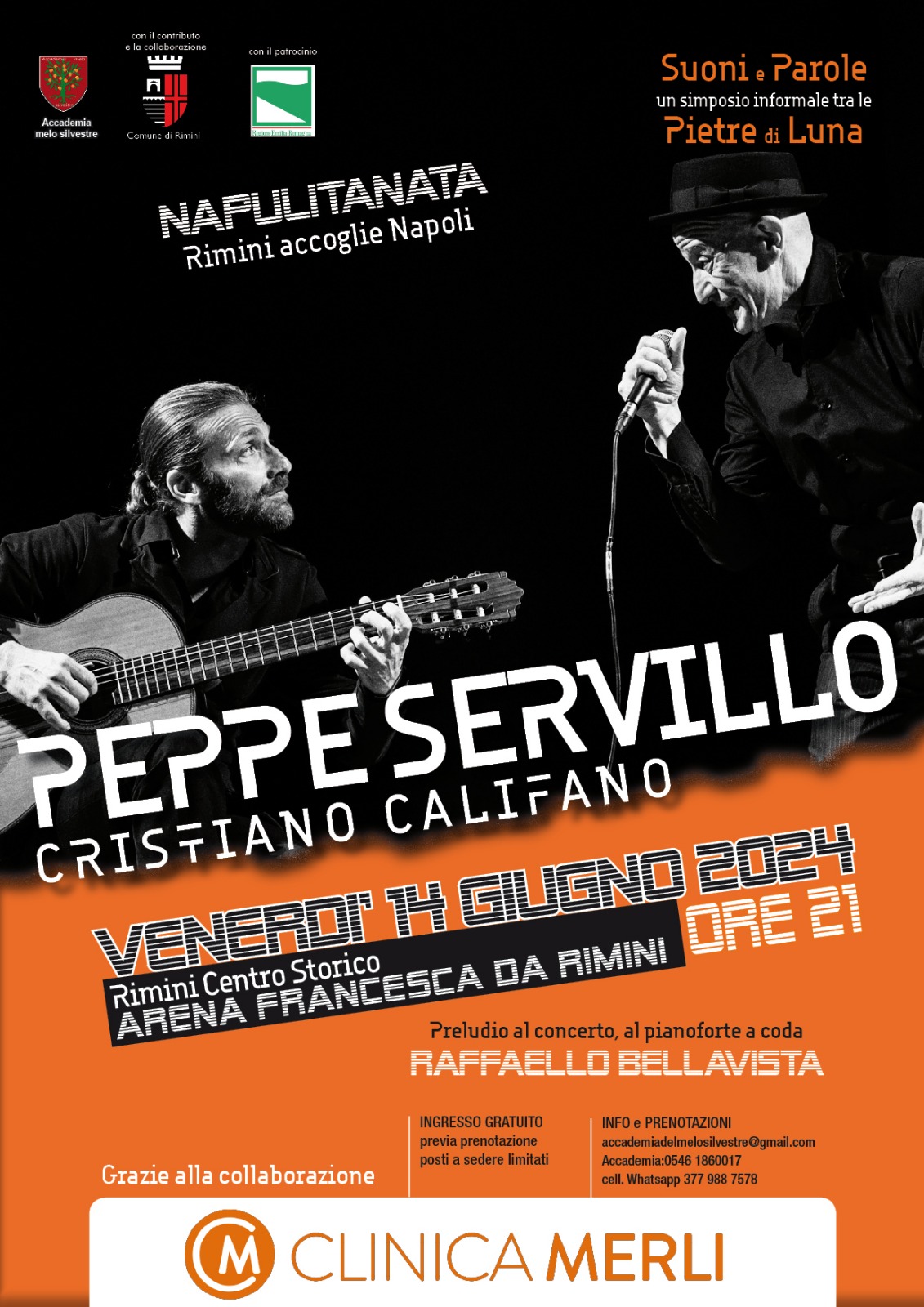 Uno spettacolo con il grande cantautore Peppe Servillo accompagnato da Cristiano Califano e altri musicisti, che presenterà il suo repertorio di grandi canzoni senza tempo, per una serata sospesa tra la grande canzone d’autore Napoletana ed un’originale rivisitazione delle Cante Romagnole dell’artista Raffaello.