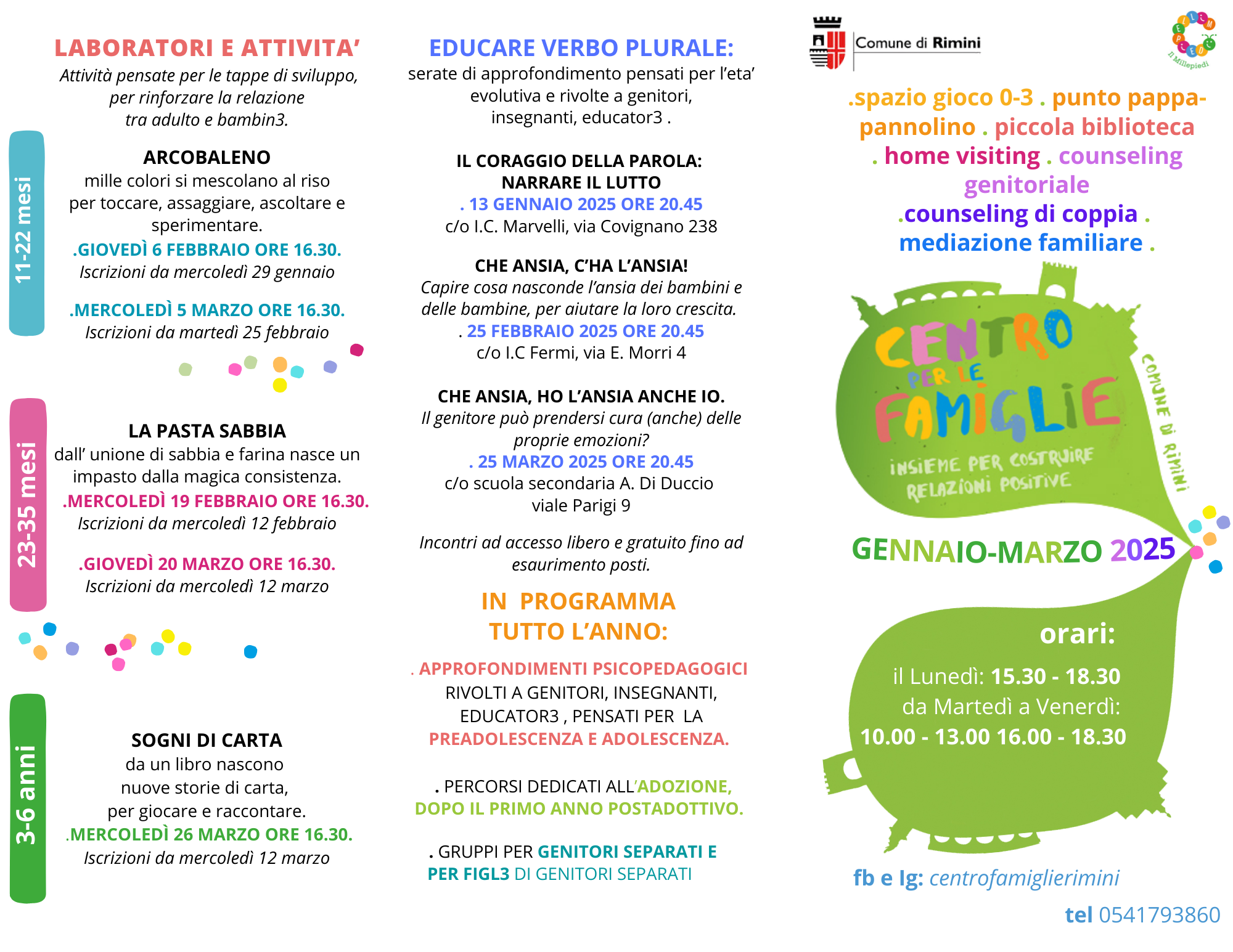 Per rimanere aggiornati sulle proposte seguite il Centro per le Famiglie sul sito del Comune di Rimini e sui canali social di Facebook e Instagram.